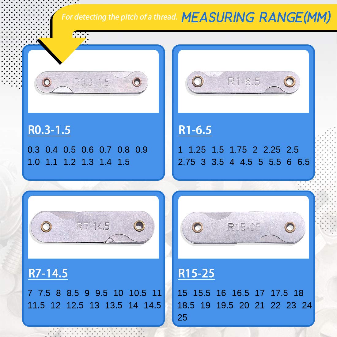 - ★【Messbereichsdetail】: R0,3-1,5 mm beträgt 0,3/ 0,4/ 0,5/ 0,6/ 0,7/ 0,8/ 0,9/ 1,0/ 1,1/ 1,2/ 1,3/ 1,4/ 1,5; R1-6,5 mm ist 1/ 1,25/ 1,5/ 1,75/ 2/ 2,25/ 2,5/ 2,75/ 3/ 3,5/ 4/ 4,5/ 5/ 5,5/6/ 6,5; R7-14,5 mm ist 7/ 7,5/ 8/ 8,5/ 9/ 9,5/ 10/ 10,5/ 11/