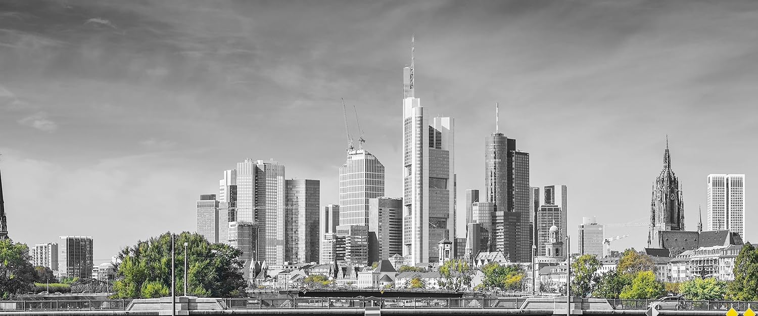 Glasbild Panorama | Wandbild aus Echtglas | Skyline von Frankfurt am Main | 100x40 cm | inkl. Aufhän