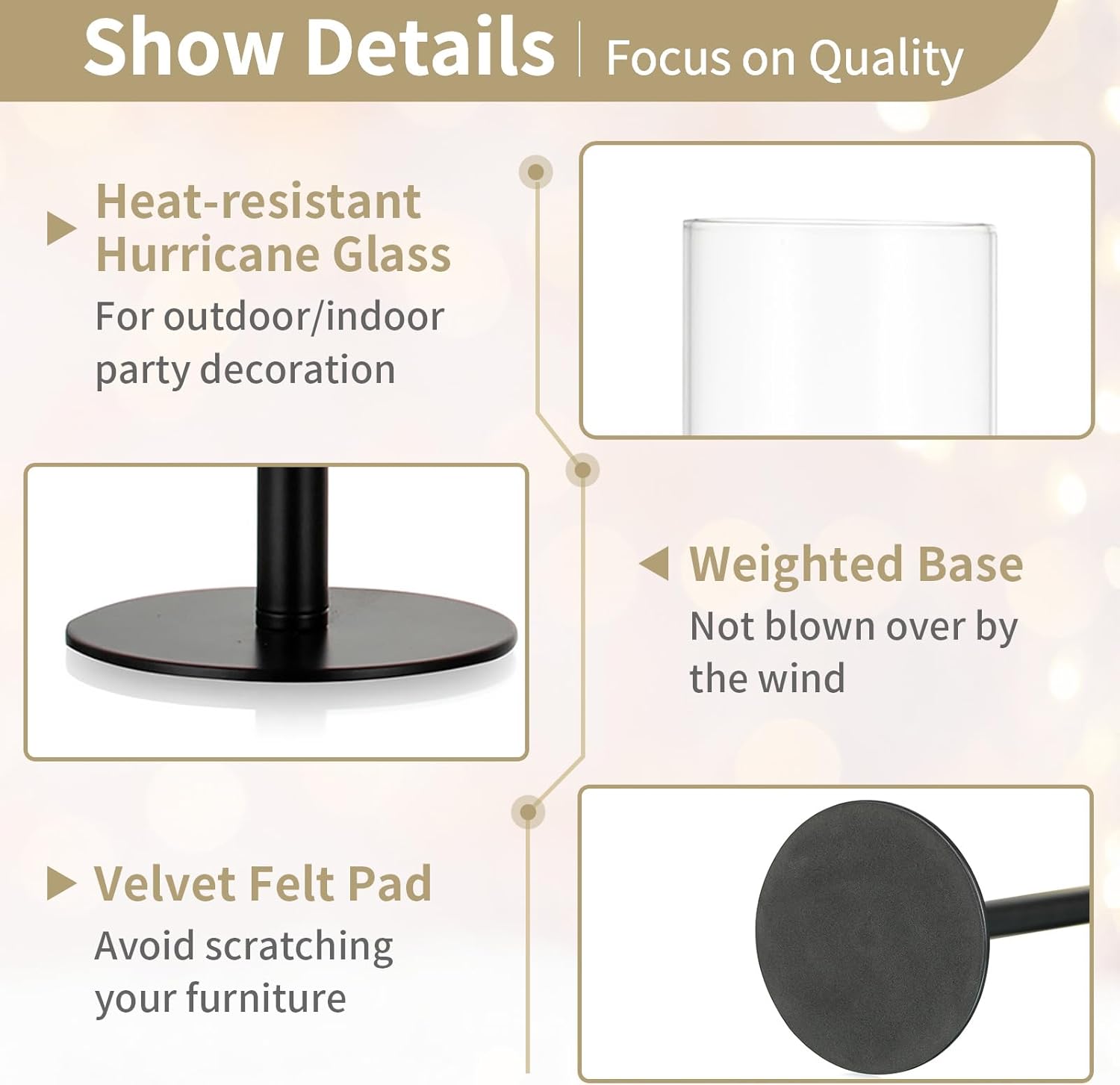 - WINDDICHTER KERZENHALTER: Jeder Kerzenhalter hat einen hochwertigen Metallsockel und ein winddichtes Hurricane-Glas. Der stabile Metallsockel verhindert, dass die Kerzen herunterfallen und verschüttet werden. Das hitzebeständige Hurricane-Glas verleiht