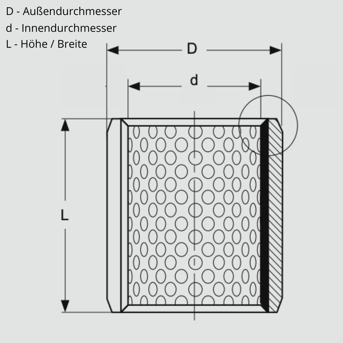 - Fertigungstoleranzen des Innendurchmessers [d]: h8 | Fertigungstoleranzen des Aussendurchmessers [D]: H8 | Maximale statische Belastung: 120 MPa | Maximale dynamische Belastung: 40 MPa