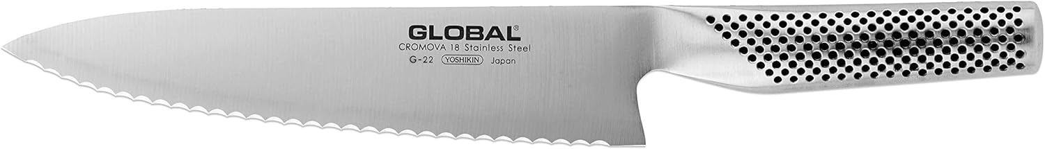 - Art : Brotmesser, japanisches Messer ganz aus Stahl mit spitzer 20 cm Klinge und Sägeschliff