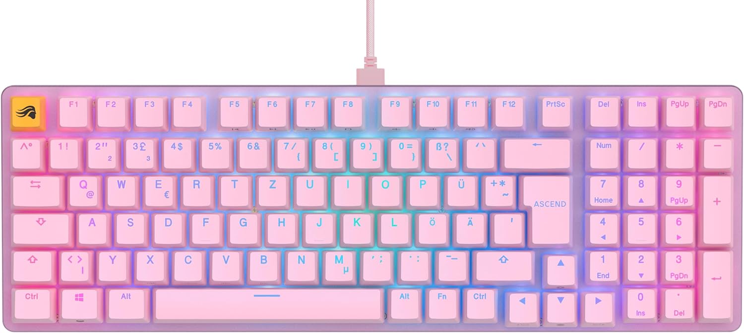 • Austauschbare mechanische Schalter & Tastenkappen: Die Hot-Swap-Sockel des GMMK 2 Full Size (96%) sind speziell auf die leichte Installation beliebiger 5-poliger Schalter ausgelegt. Vorinstalliert sind auf unserem Keyboard ab Werk geschmierte Glorious