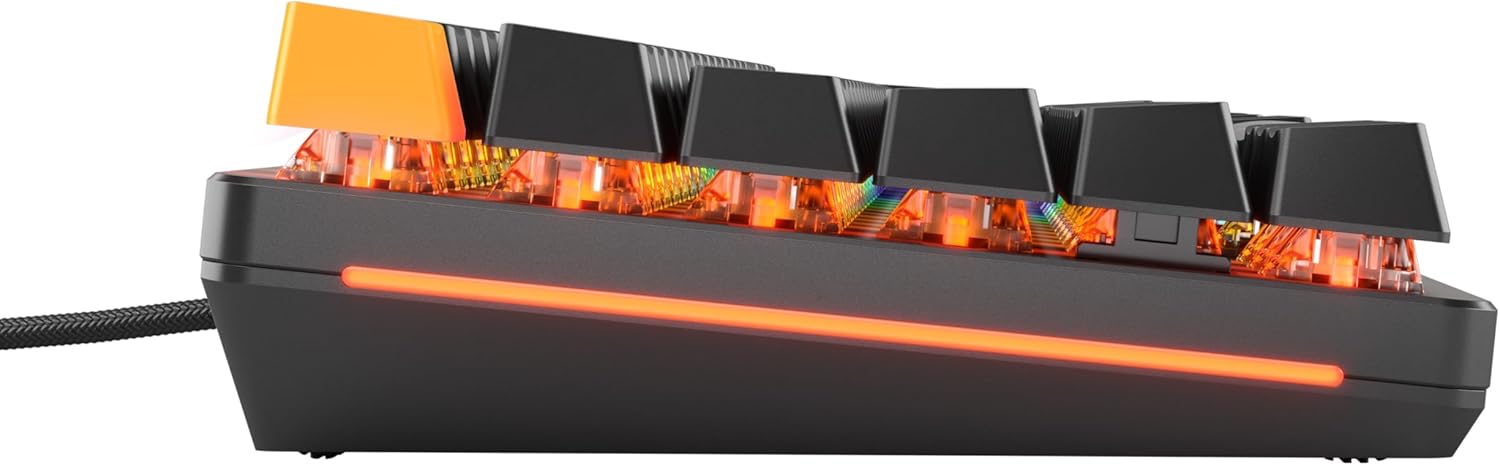 - Farbenfrohe RGB-Beleuchtung und Tastenkappen. Die tastenweise RGB-Beleuchtungsanpassung ermöglicht es Ihnen, die Vorteile der Doubleshot-Tastenkappen aus ABS-Plastik voll auszuschöpfen, wenn Sie Ihre Tastatur genau nach Ihren Vorstellungen gestalten