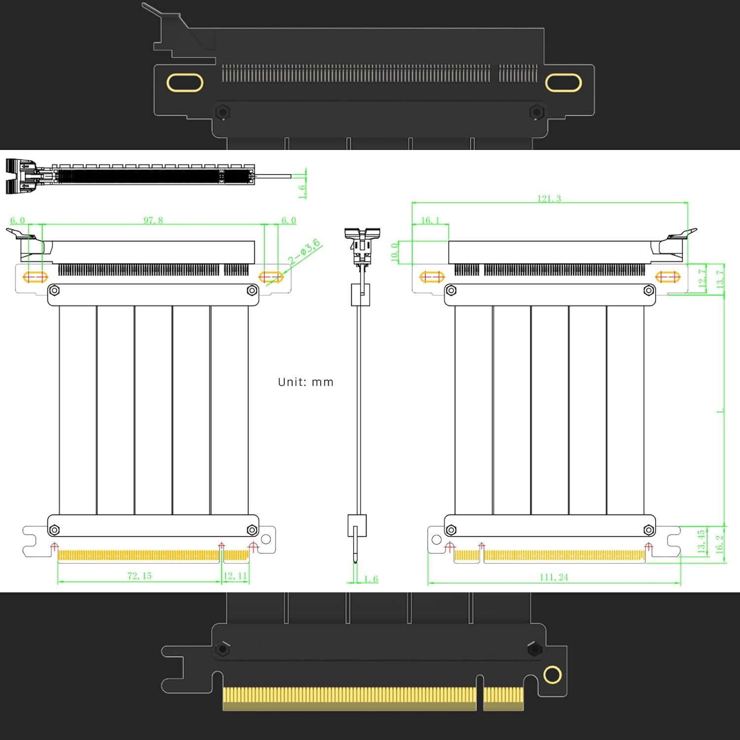 glotrends PCIe 4.0 X16 GPU Riser Kabel Länge 600mm, Buchse 180 Grad Winkel, Kompatibel mit Gen 4 GPU