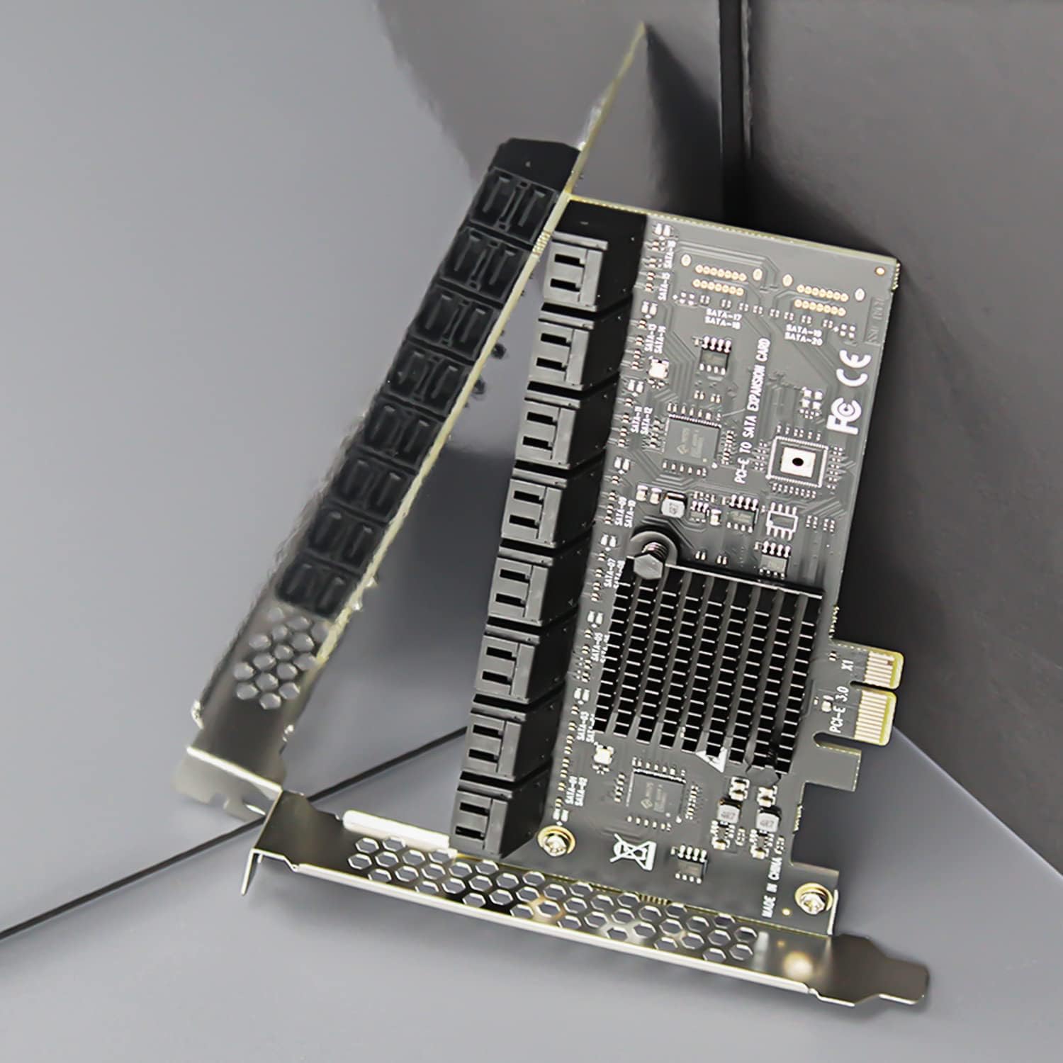 - 16 Port PCIe X1 SATA Adapter Karte: PCI-Express X1 erweitert 16 x SATA III 6Gbps Ports, so dass der PC auf 16 x SATA Treiber gleichzeitig zugreifen kann. Sie können einen Speicherpool mit 16 x SATA-Festplatten einrichten oder Software-RAID in