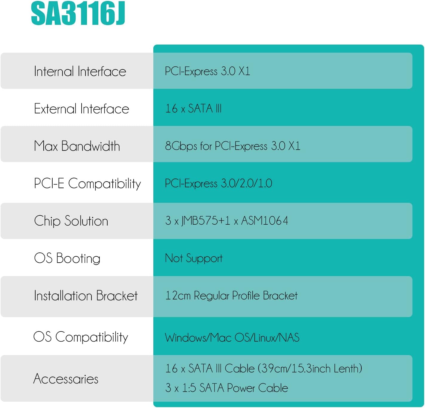 - Vorteile und Nachteile: Dieser SATA-Adapter kann mit 16 x SATA-Festplatten verbunden werden, aber nur mit PCI-Express 3.0 X1 Geschwindigkeit bei max. Er ist eine wirtschaftliche und praktische Massenspeicherlösung.