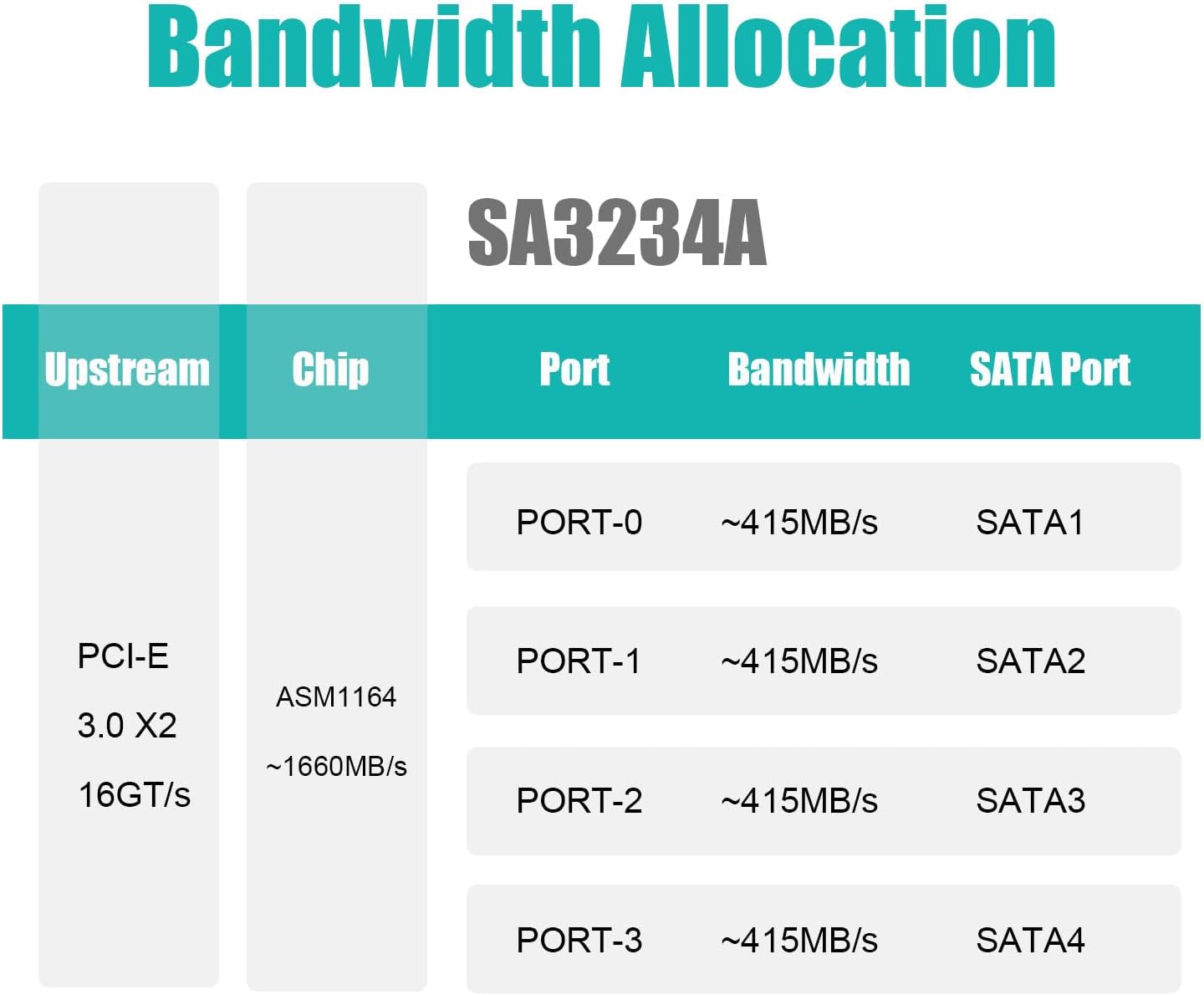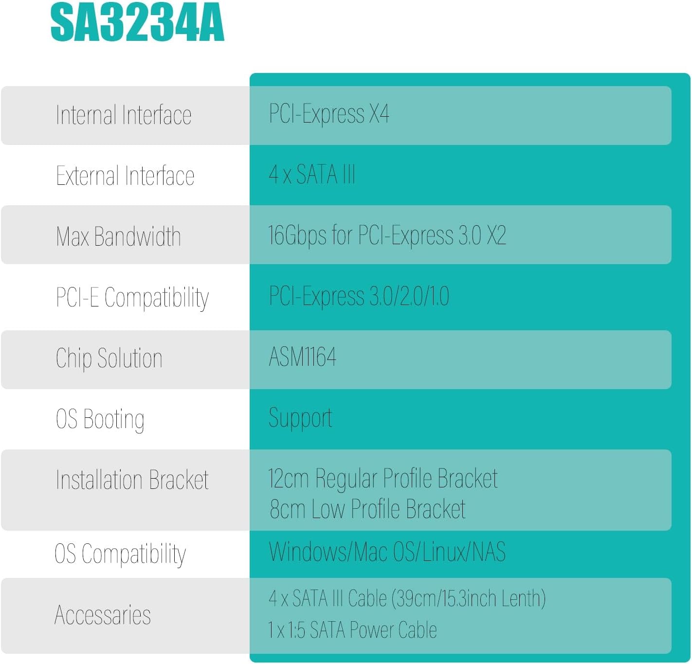 - Einfache Installation & Komplettset: Die Karte passt in PCI-Express X4/X8/X16-Steckplätze für eine einfache Einrichtung. Im Lieferumfang enthalten sind 4 SATA-III-Kabel, ein 1:5-SATA-Stromsplitterkabel und 12 cm lange reguläre und 8 cm lange