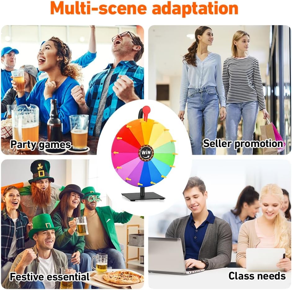 - 【Vielfältige Einsatzmöglichkeiten】Das Drehrad spinning prize wheel eignet sich für verschiedener Spiele, die Glück erfordern, z.B. Partys, Werbeaktionen in Einkaufszentren, Familientreffen und Firmenveranstaltungen. Dieses glücksrad zum drehen
