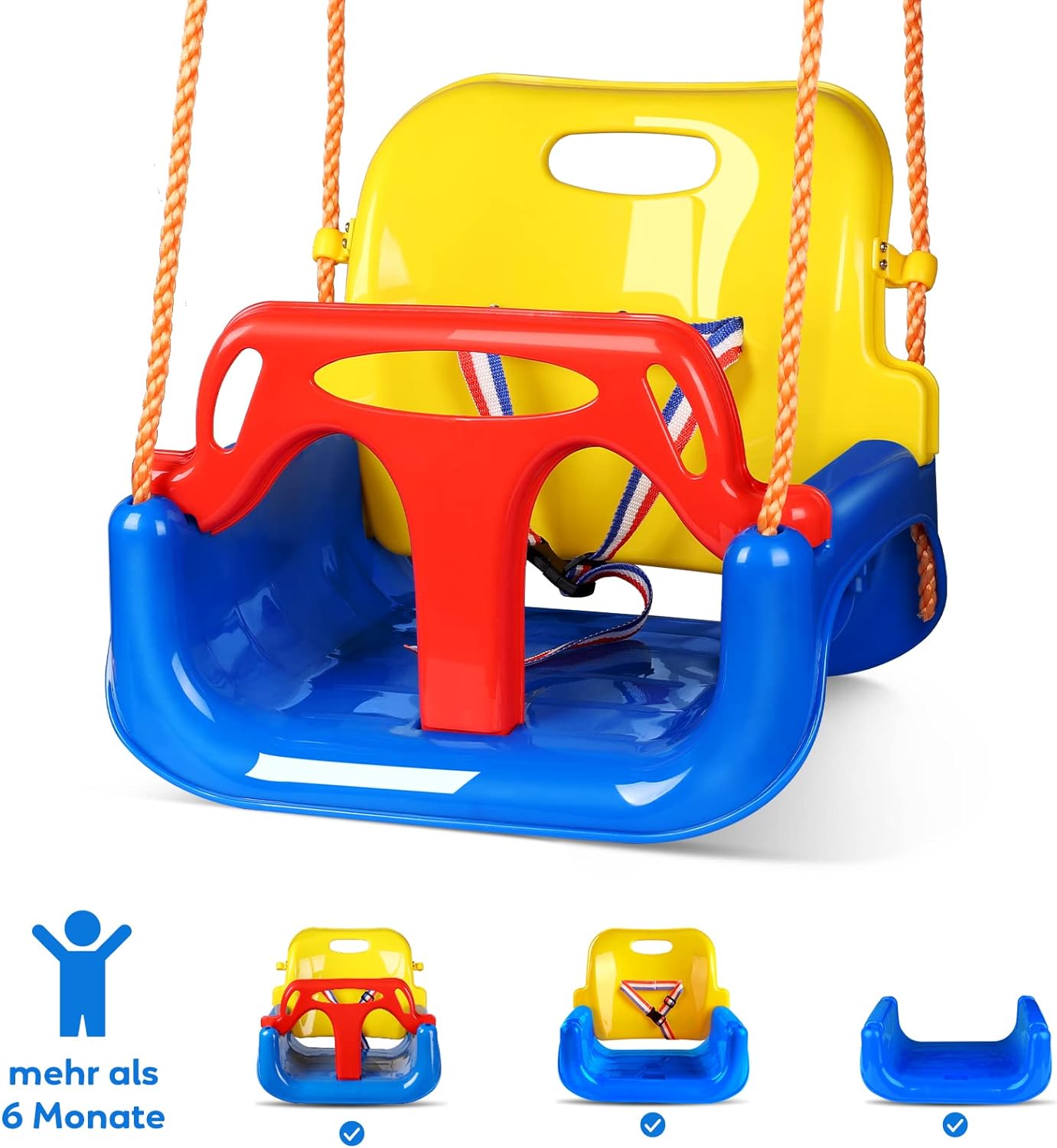 - Sicheres Schaukelset: Kinderschaukel wird mit rotem vorderen T-Stab und Sicherheitsgurt geliefert. Starkes Nylonseil aus hochwertigem Kunststoff, belastbar bis 100kg. Das Anti-Kipp-Design auf der Rückseite schützt Kinder auch beim Spielen vor Umdrehen und Umkippen