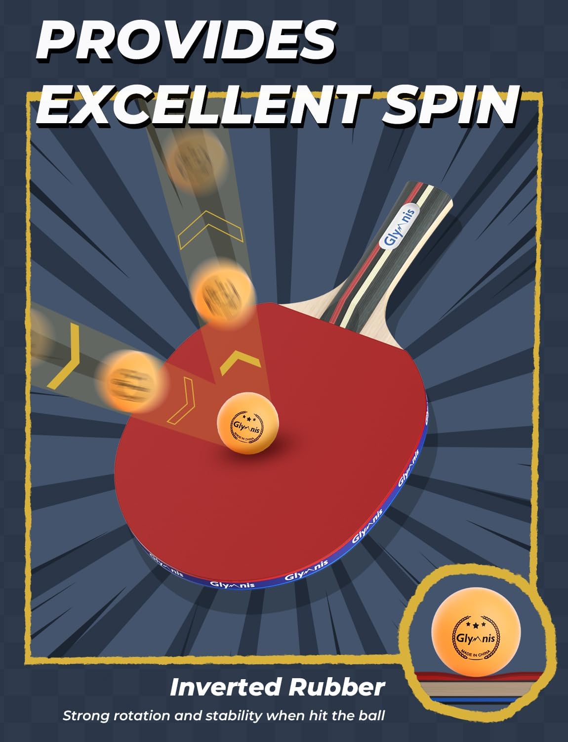 - Leistungsstarke Tischtennisschläger – unsere Tischtennisschläger sind aus rissfesten Hölzern und Gummi. Der ergonomische Griff besteht aus hochwertigen Materialien, die nicht leicht korrodiert werden können und eine gute Schweissaufnahme aufweist.