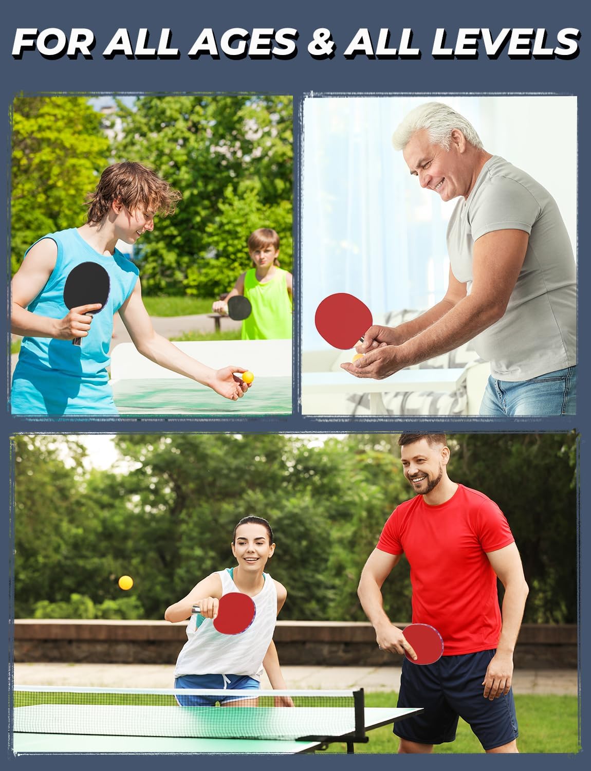 - Einfache Installation Tischtennisnetz: Unser Tischtennis-Set enthält ein einziehbares Tischtennisnetz, tragbar und einfach zu installieren. 【Nur 3 Schritte】Drücken Sie den Hebel, befestigen Sie ihn an jedem Tisch, der weniger als 5 cm dick ist, und