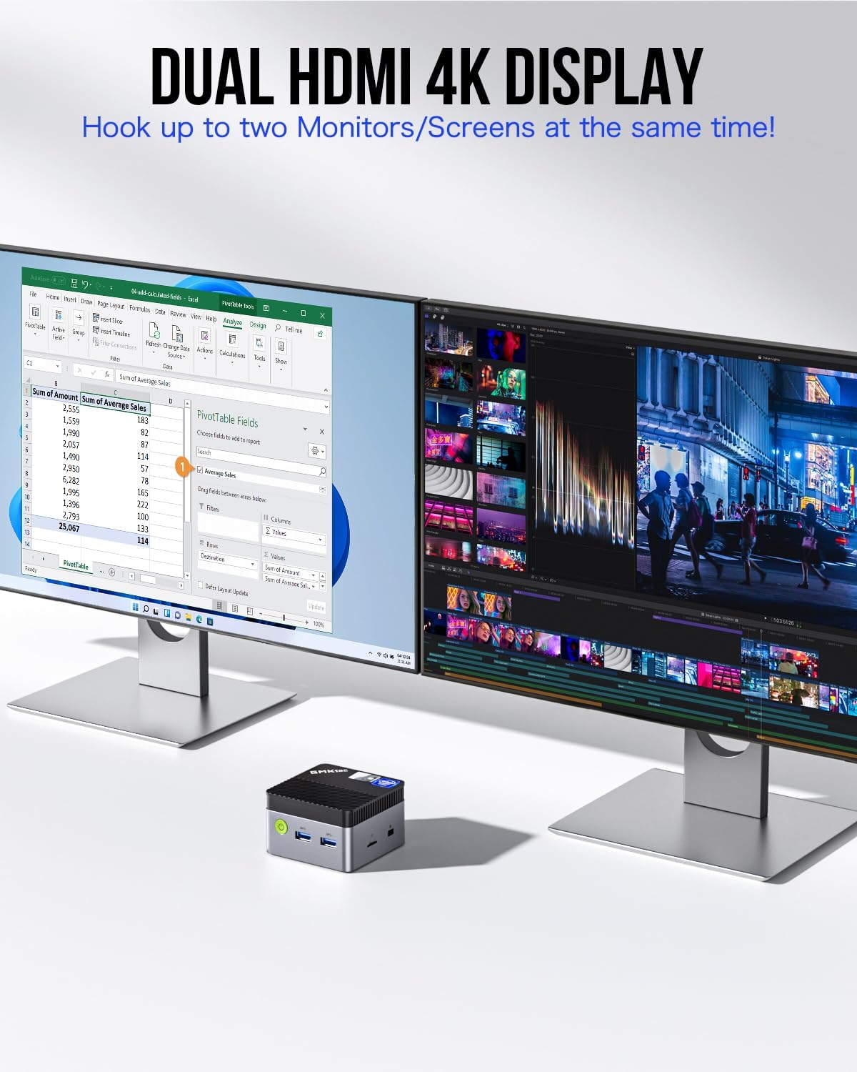 - HDMI 4K@60Hz HD-Display: Der G5 Micro-Desktop-Mini-PC unterstützt 4K UHD-High-Definition-Ausgabe, 4K UHD-Displayauflösung von 4096 x 2160@60Hz und 1200 MHz dynamische Frequenz, was Ihnen ein kinoähnliches visuelles Erlebnis bietet. Mit zwei