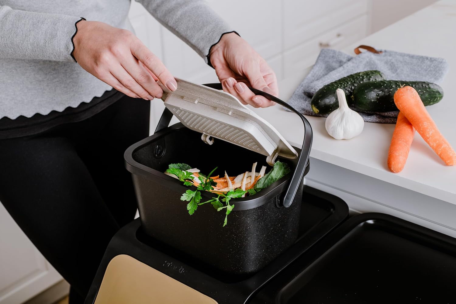 - NACHHALTIG & LEICHT ZU REINIGEN – die abgerundeten Kanten des Behälters erleichtern seine Reinigung, sodass Du keine Einwegbeutel verwenden musst. Du sparst dadurch Geld und leistest Deinen Beitrag zur Umweltschutz.