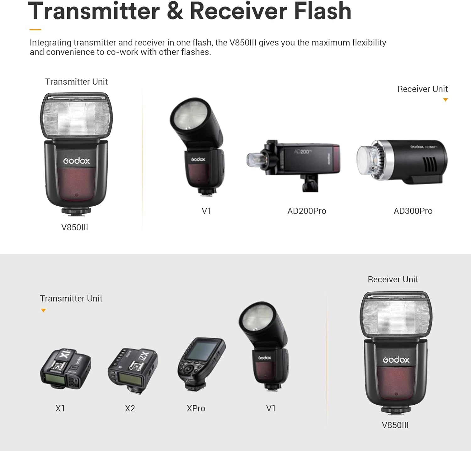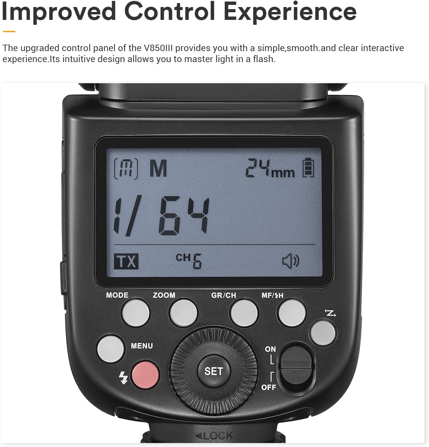 Godox V850III Kamerablitz Speedlite 76Ws, 2600mAh Lithiumbatterie, 1,5s Wiederaufladezeit, 2,4G X Wi