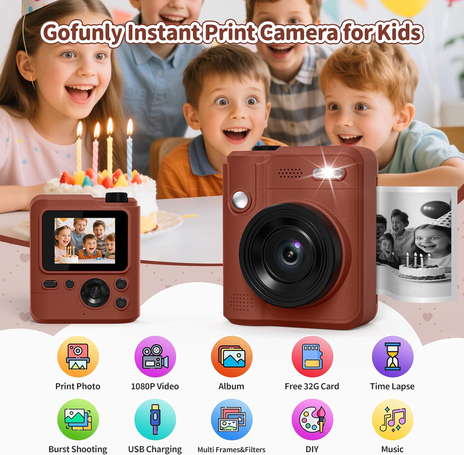 - 【32GB-Karte & 1000mAh Akku】Die kinderkamera sofortbildkamera ist mit einem wiederaufladbaren 1000mAh Lithium-Ionen-Akku ausgestattet und unterstützt stundenlange Nutzung; Kostenlose 32GB-Karte als Geschenk für Kinder, um die Welt zu erkunden und