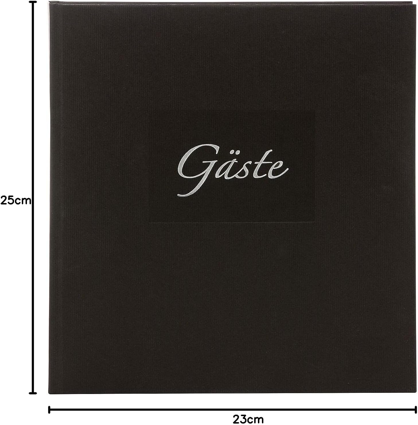 - Lieferumfang: 1 Goldbuch Gästebuch Seda, 48045, Grösse: 23 x 25 cm, Seitenanzahl: 176 weisse Blankoseiten Schreibpapier, Material: Kunstdruck gerippt mit Silberprägung, Farbe: Schwarz