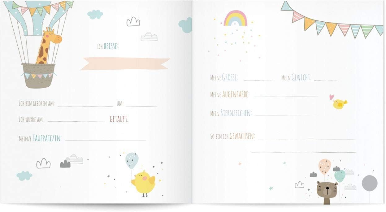 • Auf 4 illustrierten Seiten lassen sich die wichtigsten Daten Ihres Neugeborenen festhalten und verewigen. Das Papier ist für alle Stifte, Fotokleber, Foto Taps, Foto Roller und Fotoecken geeignet