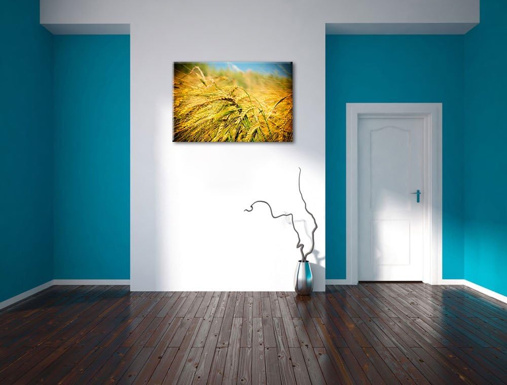 Goldene Getreide Ären Format: 100x70 auf Leinwand, XXL riesige Bilder fertig gerahmt mit Keilrahmen,