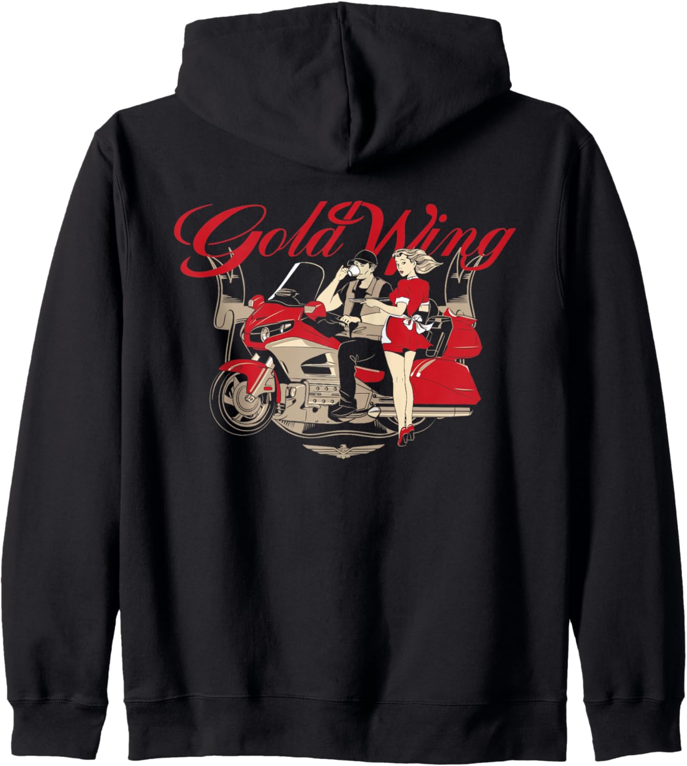 PRODUKTBESCHREIBUNGEN Motorrad T-Shirt. Mann mit Sportmotorrad Goldwing. Pin Up Style, Motorradfahrer, Mädchen, Kaffee Mehr