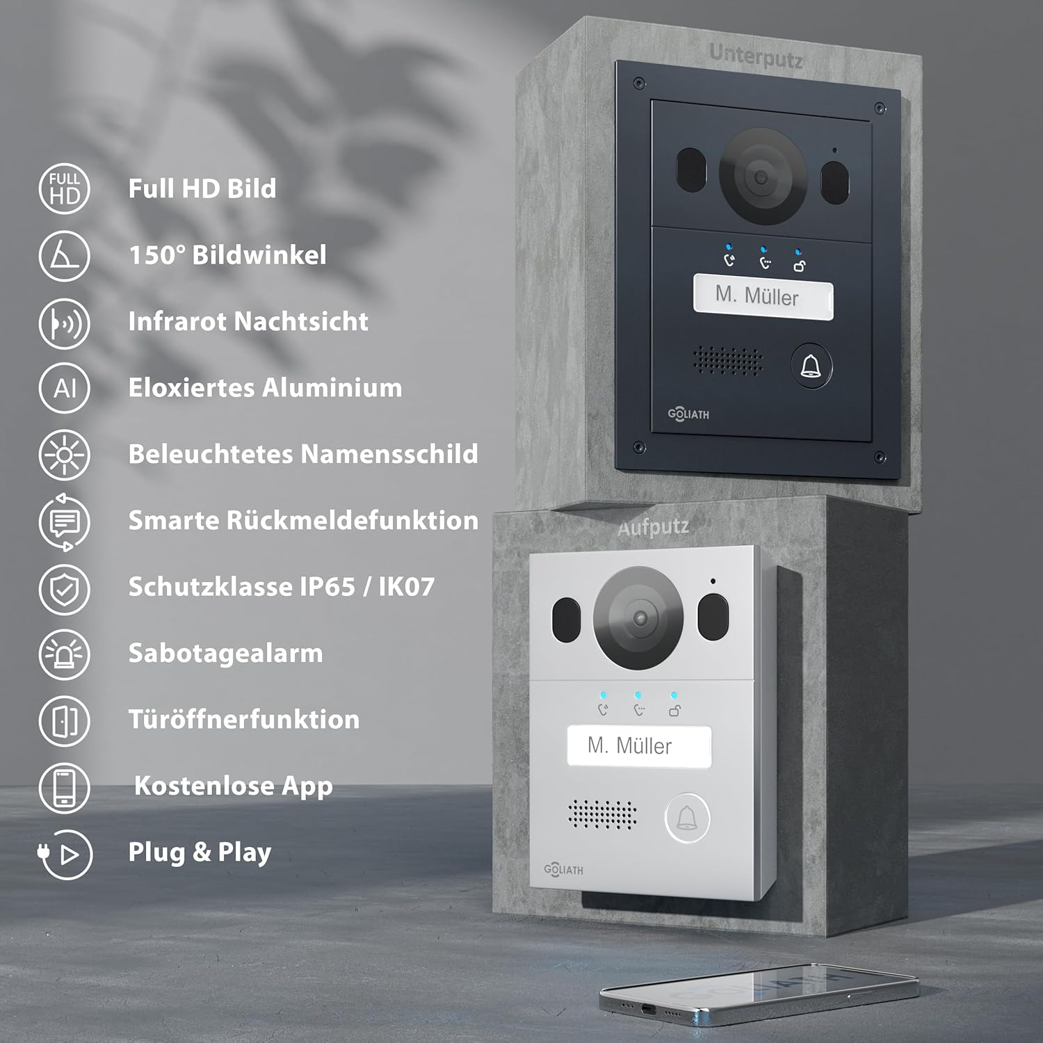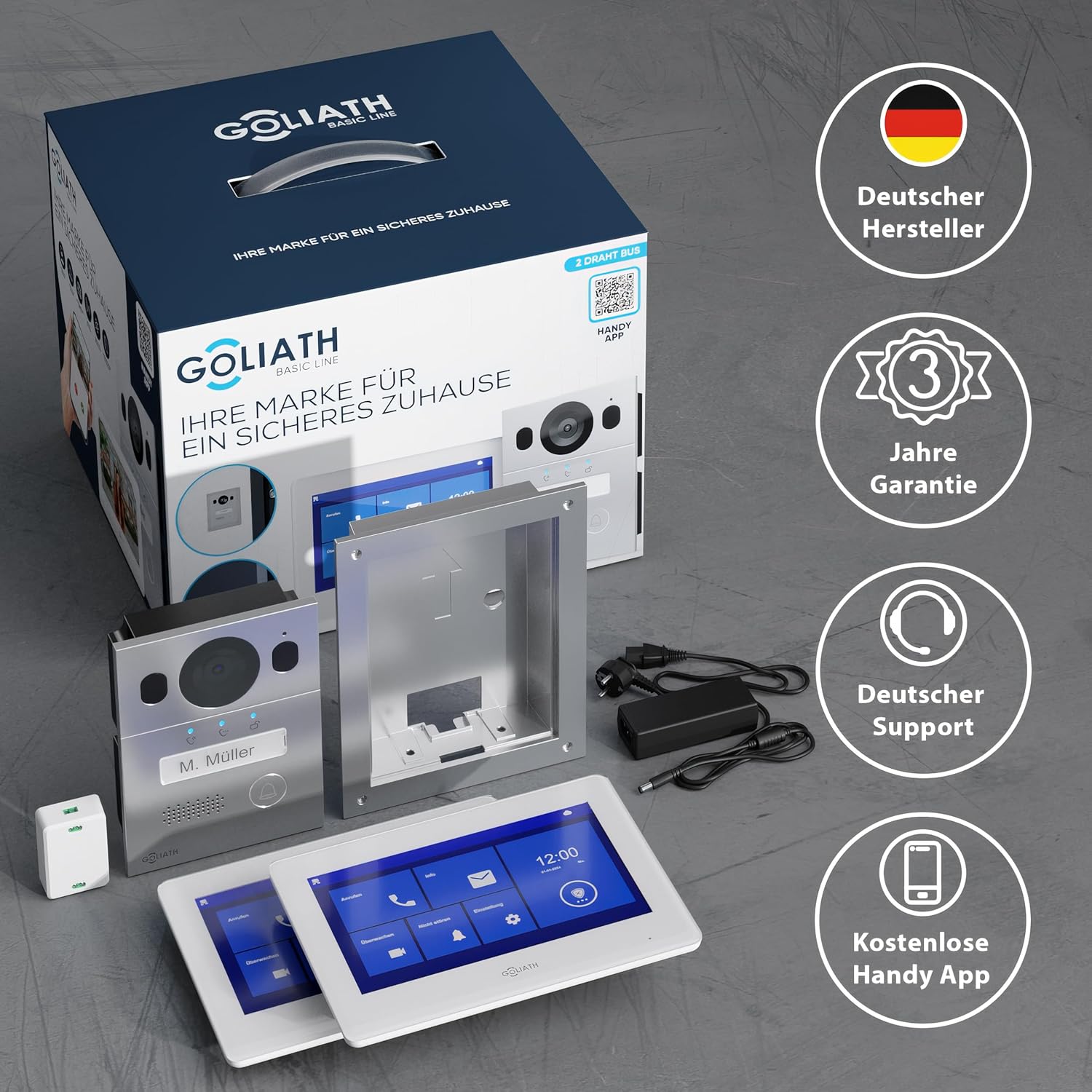 - Einfache Installation: Die Türsprechanlage mit Kamera von GOLIATH ist einfach zu installieren. Das Einfamilienhaus Set enthält zwei Monitore und Klingel mit Kamera, Tür Öffner Anschluss, Netzteil, BUS Modul und Verteiler.