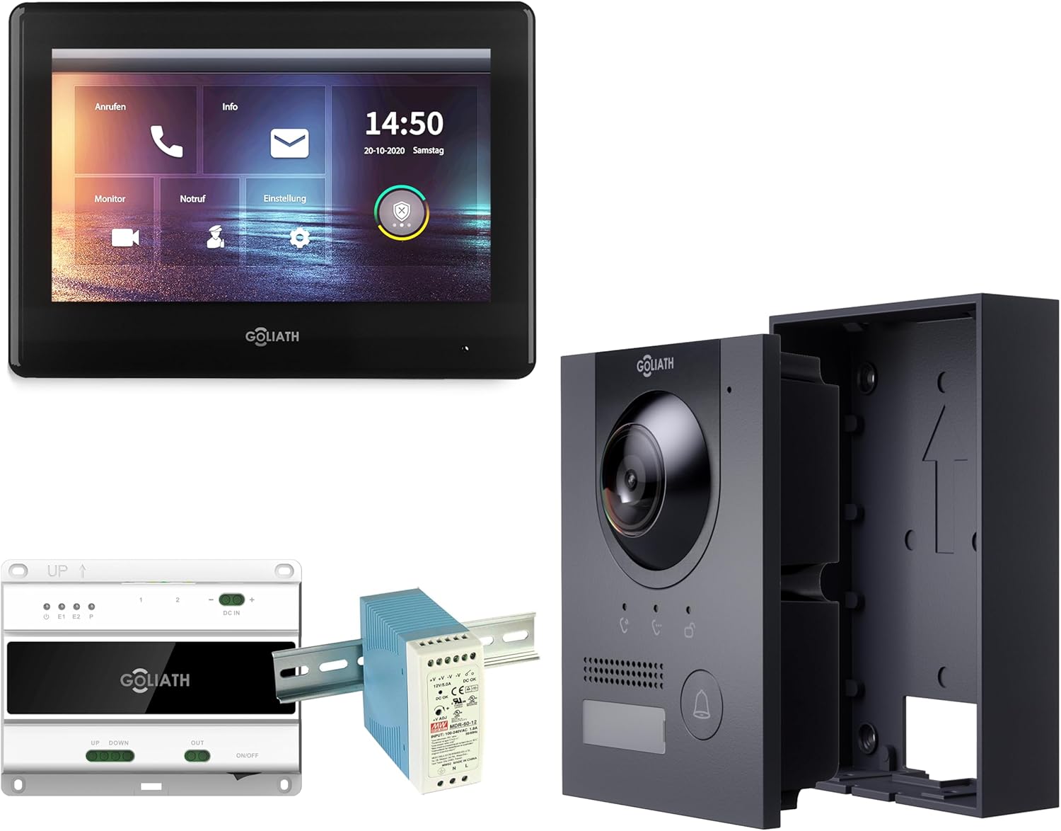 - 🏠 1-Familienhaus-Komplettset: Im Lieferumfang enthalten sind ein schwarzer 7-Zoll Touchscreen-Monitor und eine elegante Türstation in Anthrazit mit Aufputzgehäuse sowie ein BUS-Modul und ein Hutschienen-Netzteil für die gesamte Stromversorgung.