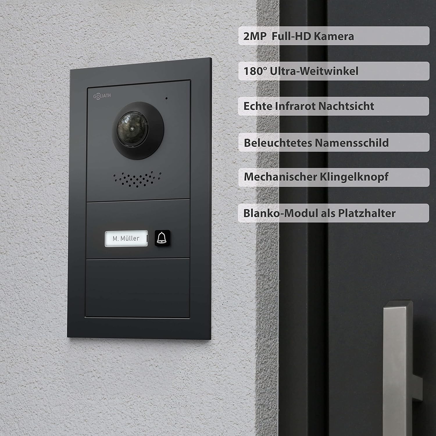 - MODULARE TÜRSTATION - Eloxiertes Unterputz Aluminiumgehäuse. Verkabelung über LAN-Kabel. IP65 und IK07. Full-HD Kamera. 180° Ultra-Weitwinkel. Echte IR Nachtsicht. 2-Familienhaus.