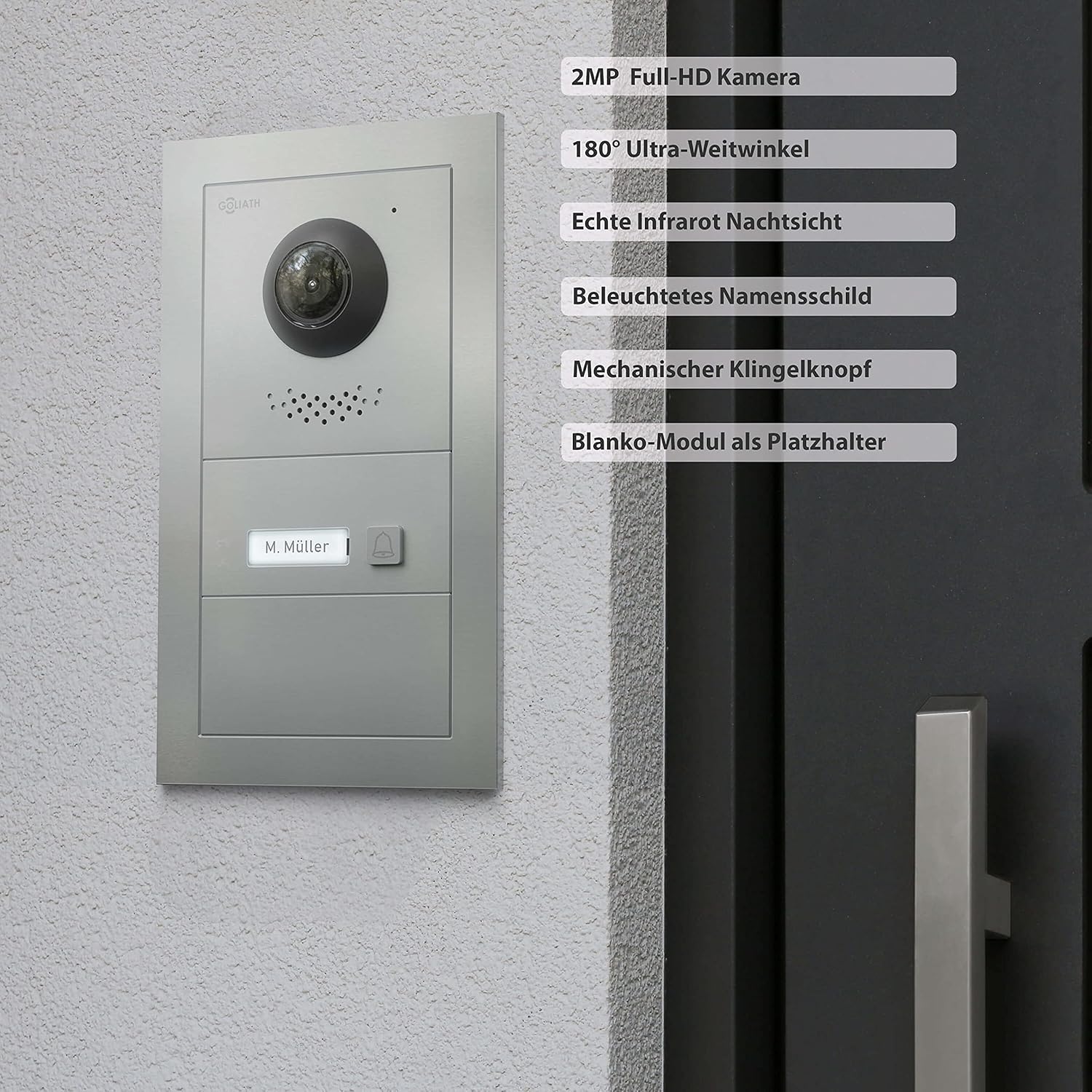 - MODULARE TÜRSTATION - Eloxiertes Unterputz Aluminiumgehäuse. Verkabelung über LAN-Kabel. IP65 und IK07. Full-HD Kamera. 180° Ultra-Weitwinkel. Echte IR Nachtsicht. 2-Familienhaus.