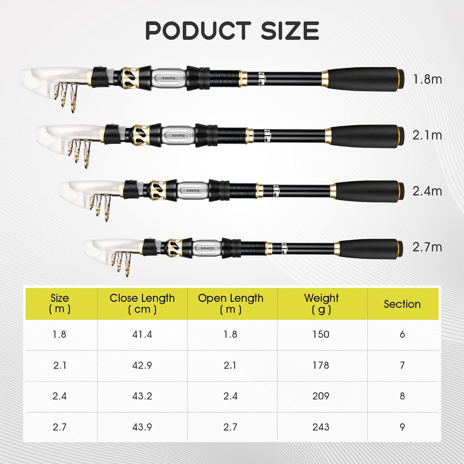 - Hochwertige Teleskoprute: Hochwertig hergestellt aus 24T Kohlefaser, Rollen mit rostfreier Edelstahl-Basis gegen Meerwasser. Der Edelstahlführungsring mit einem Keramikring verbessert die Wärmeableitung. Der EVA-Griff ist weich und angenehm zu halten.