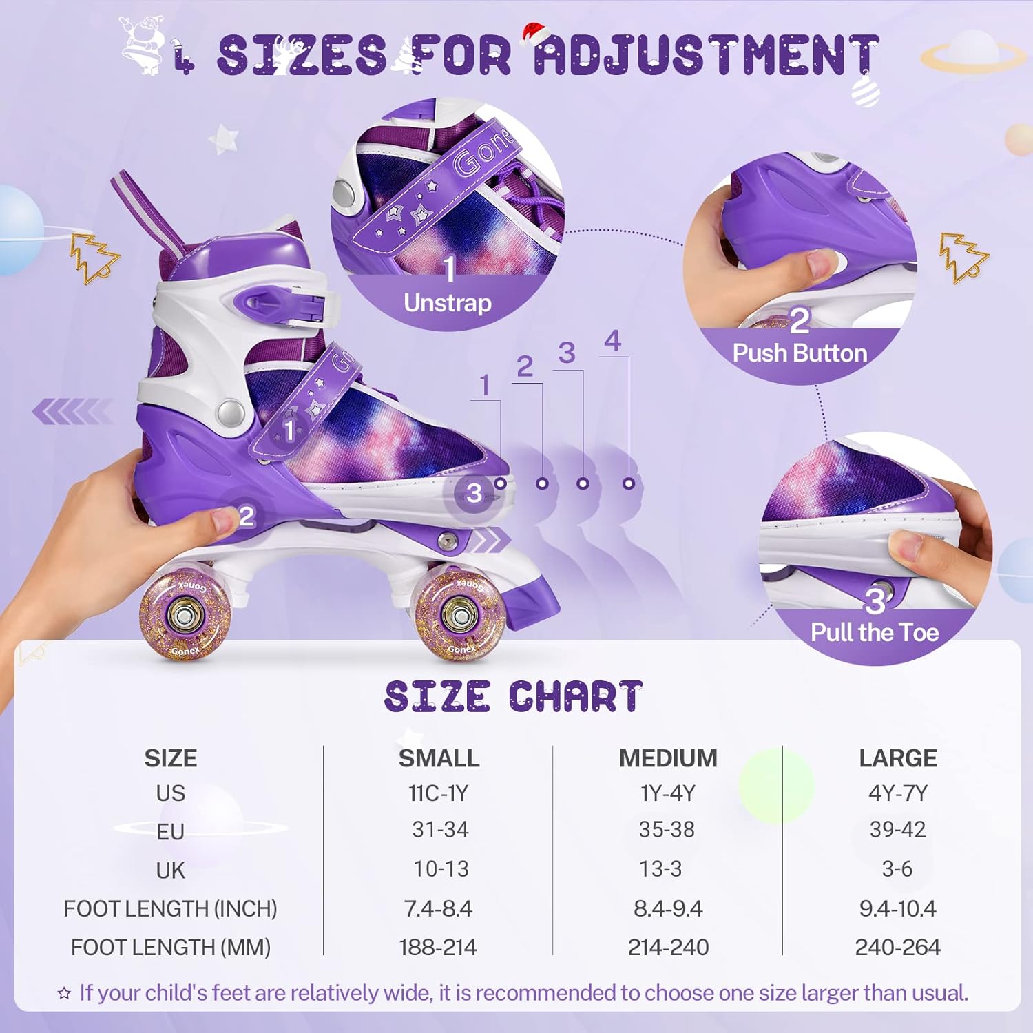 - 【Verstellbare Rollschuhe - 4 Verschiedene Grössen】 Design mit einfach verstellbarem Druckknopf, Gonex Rollschuhe können auf 4 verschiedene Grössen eingestellt werden, um sich an unterschiedliche Fusslängen anzupassen, was die perfekte Wahl für