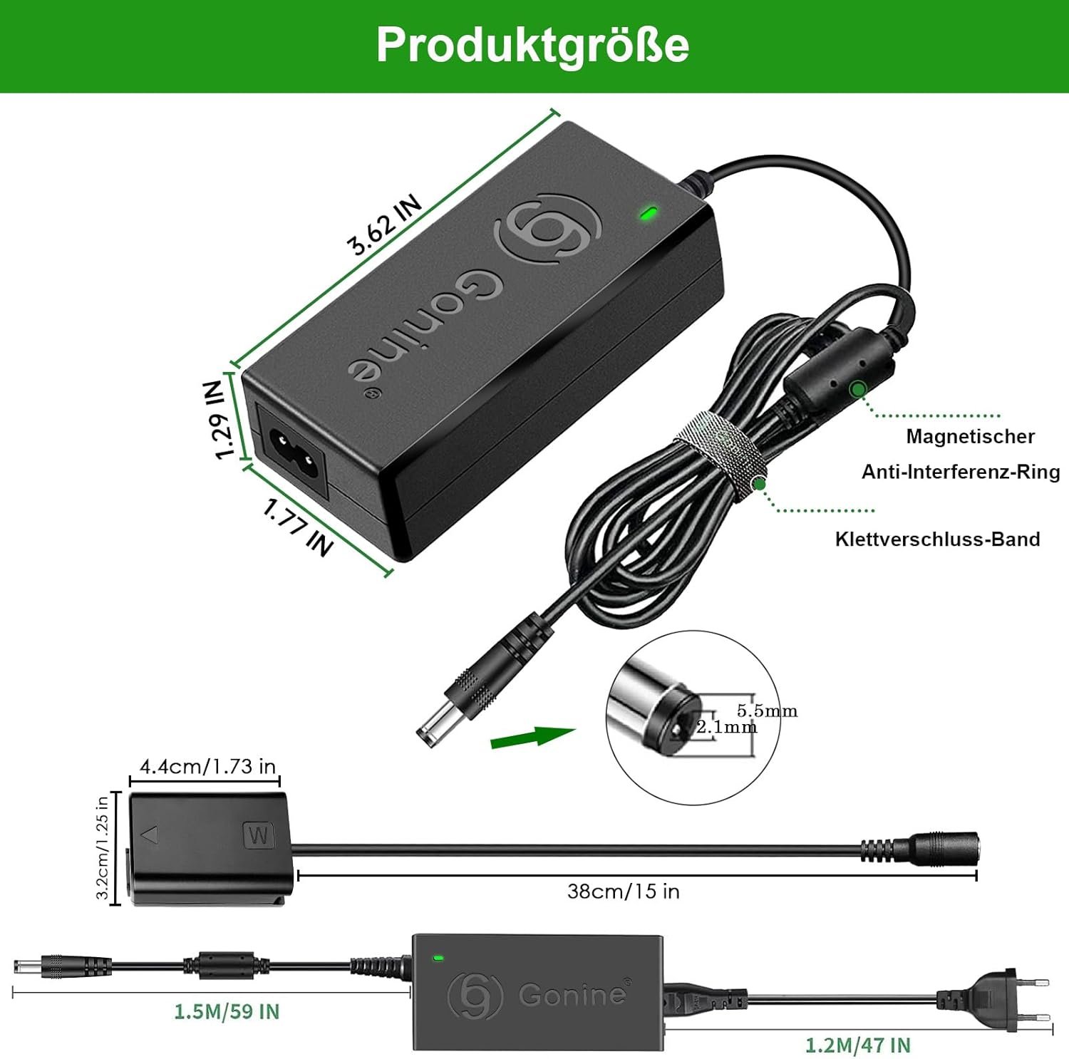 - [KOMPATIBEL MIT:] Der Gonine AC-PW20 Dauerstromadapter NP-FW50 ZVE10 Dummy Akku Kit für Sony Alpha A6400, ZV-E10, A7, A7II, A6000, A6100, A6300, A6500, A5100, A5000, A7RII, A7SII, A7S, A7S2, A7R, A7R2, Cyber-shot DSC-RX10 II III IV, NEX-3, NEX-5,