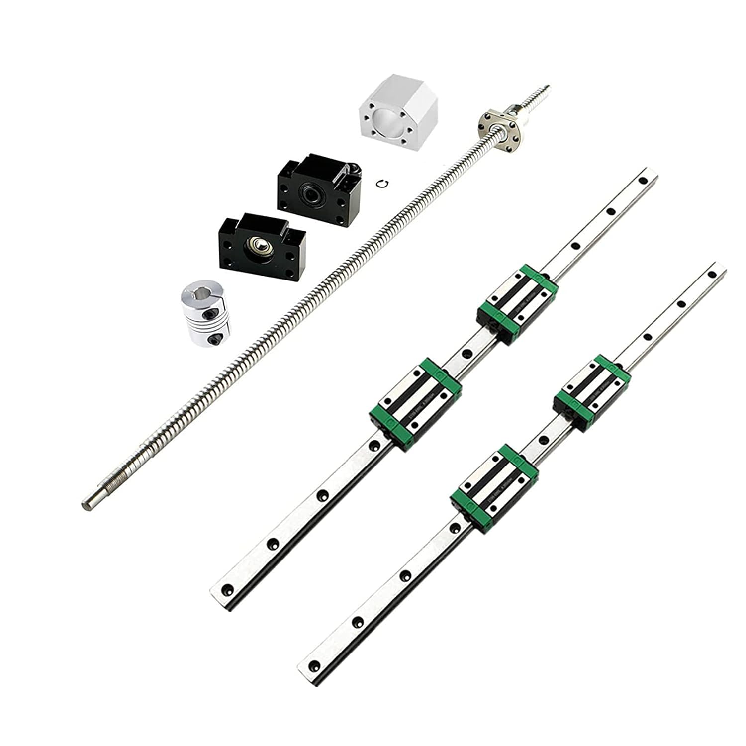 - 600MM HGR20 LINEARSCHIENE: Dieses Linearführungset enthält 2 Stück HGR20-600mm Führungsschienen, 4 Blöcke, 1 Stück RM1605-600m Kugelumlaufspindel, 1 Stück Kugelmutter, 1 Stück BF12/BK 12 Seite, 1 Stück DSG16H Muttergehäuse und 1 Stück Kupplung.