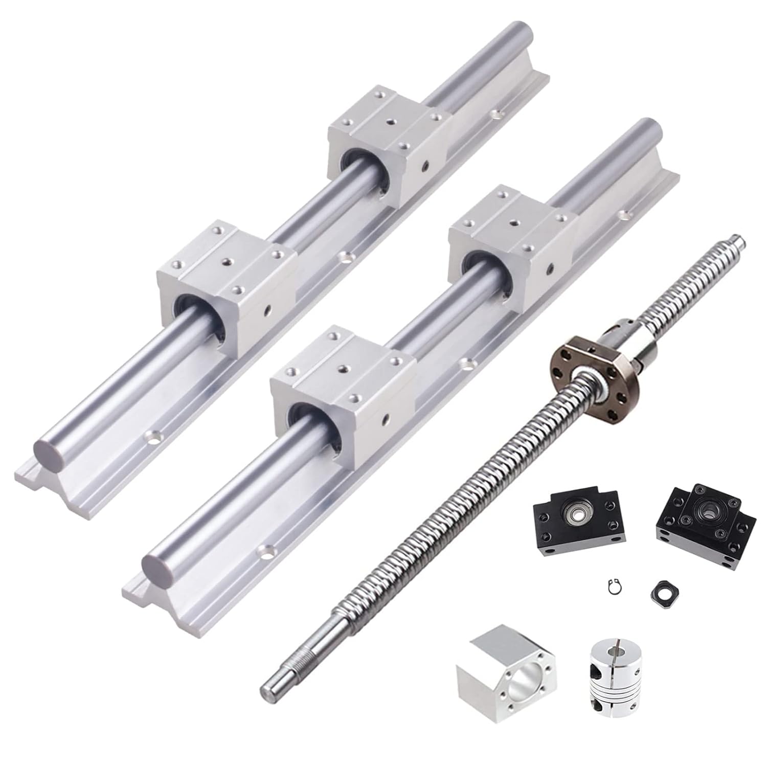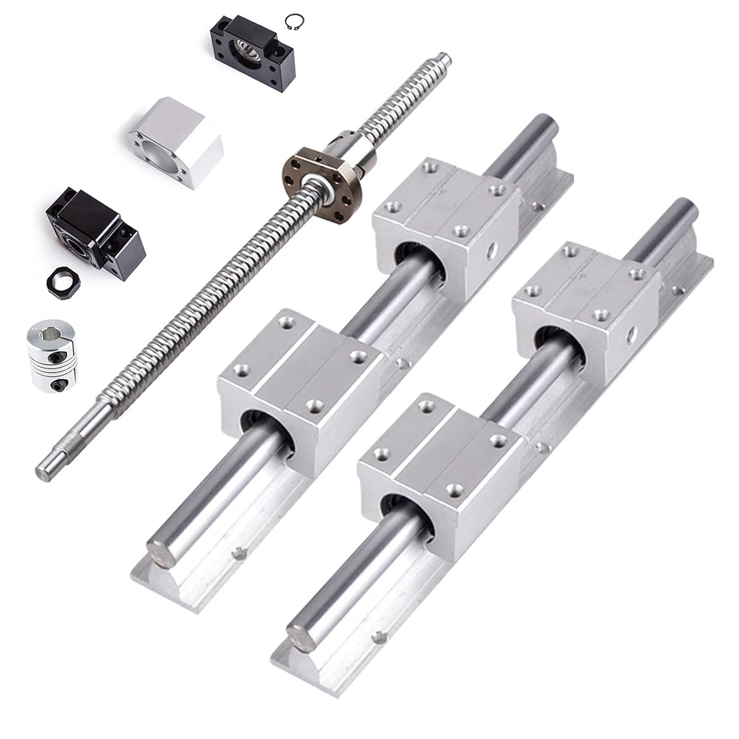 - SBR20 LINEARE SCHIENENSÄTZE: Dieses Set enthält unterstützte lineare Schienen 2 Stück SBR20 1000mm Linearführung Gleitschiene Welle mit 4x SBR20UU Lagerblock, 1 Stück Kugelumlaufspindel SFU1605-1000mm, 1 Satz BK / BF12, 1 Stück Kugelmutter, 1