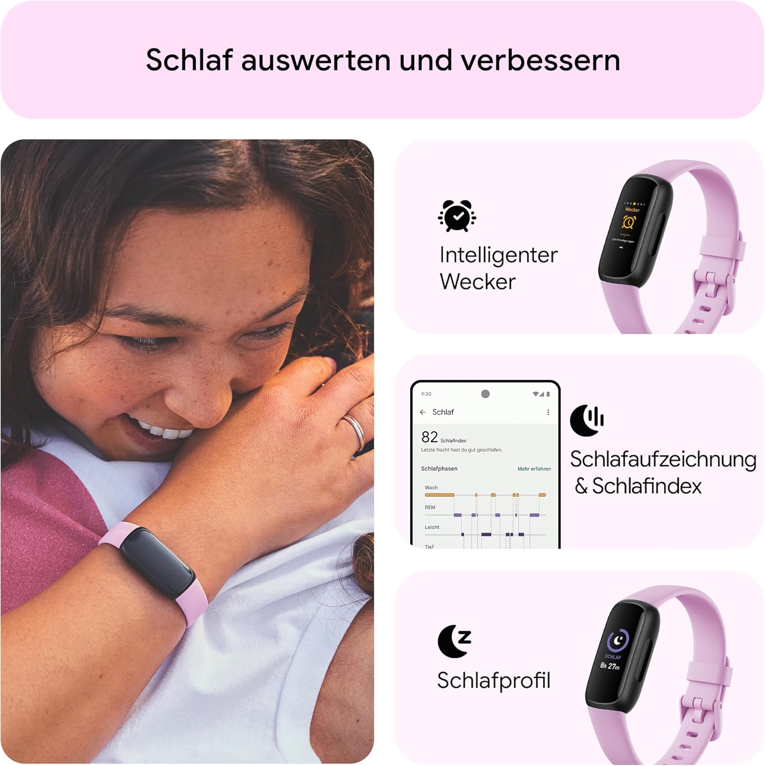• Besser schlafen: Schlaftracking, persönliches Schlafprofil, Aufschlüsselung des Schlafindex, Intelligenter Wecker & Schlaf-Modus