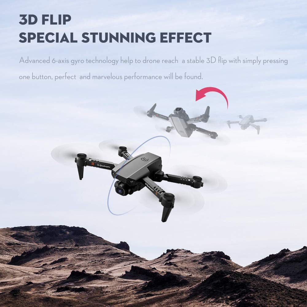 - 3D-Flip: Fortschrittliche 6-Achsen-Gyroskop-Technologie hilft dabei, die Drohne einen stabilen 3D-Flip zu erreichen, indem Sie nur eine Taste dr眉cken, perfekte und wunderbare Leistung finden