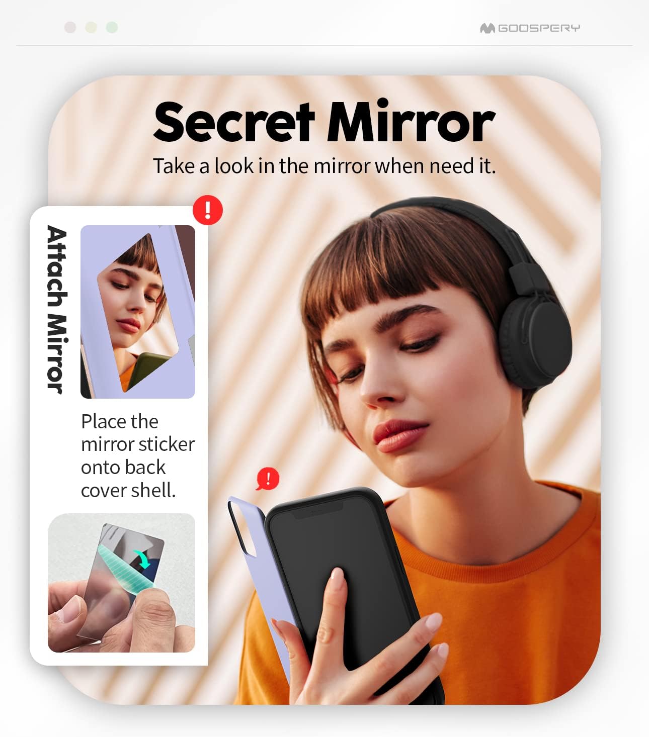 - Versteckter Spiegel – Verwenden Sie den Spiegel einfach überall und jederzeit, indem Sie ihn an der Innenseite der Rückseite befestigen. (Bitte entfernen Sie die kratzfeste Folie vor dem Gebrauch)