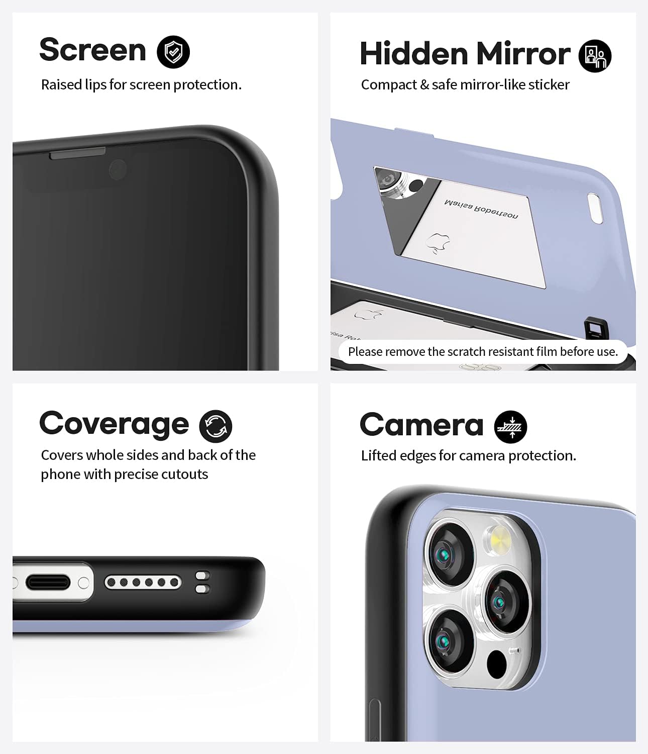 - [Kartenhalter] Widmen Sie sich allen Karten, die Leute tragen. Der Kartenaufbewahrungsteil ist mit einer Kurve gestaltet, sodass Sie 2 Karten von unten nach oben leichter aufbewahren können. Darüber hinaus ist der aufsteckbare versteckte Spiegel im