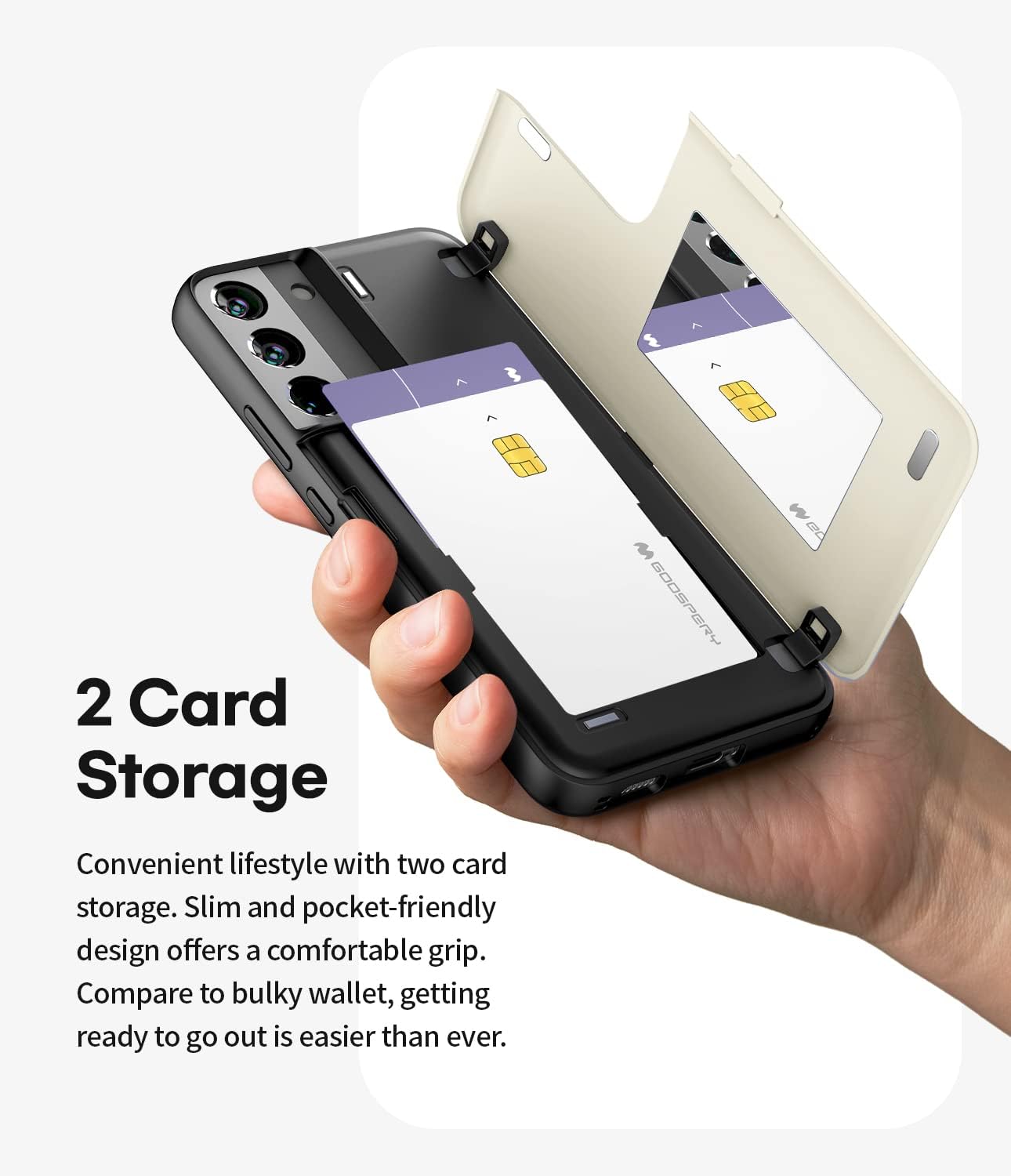 - [2 Kartenhalter] Goospery-Kartenhalter Case, das man zwei Karten auf der Rückseite des Cases tragen kann, gibt eine natürliche Kurve an das Einfügen-Teil der Karte, sodass man die Karte leicht tragen und herausnehmen kann. Da es eine Tür aus