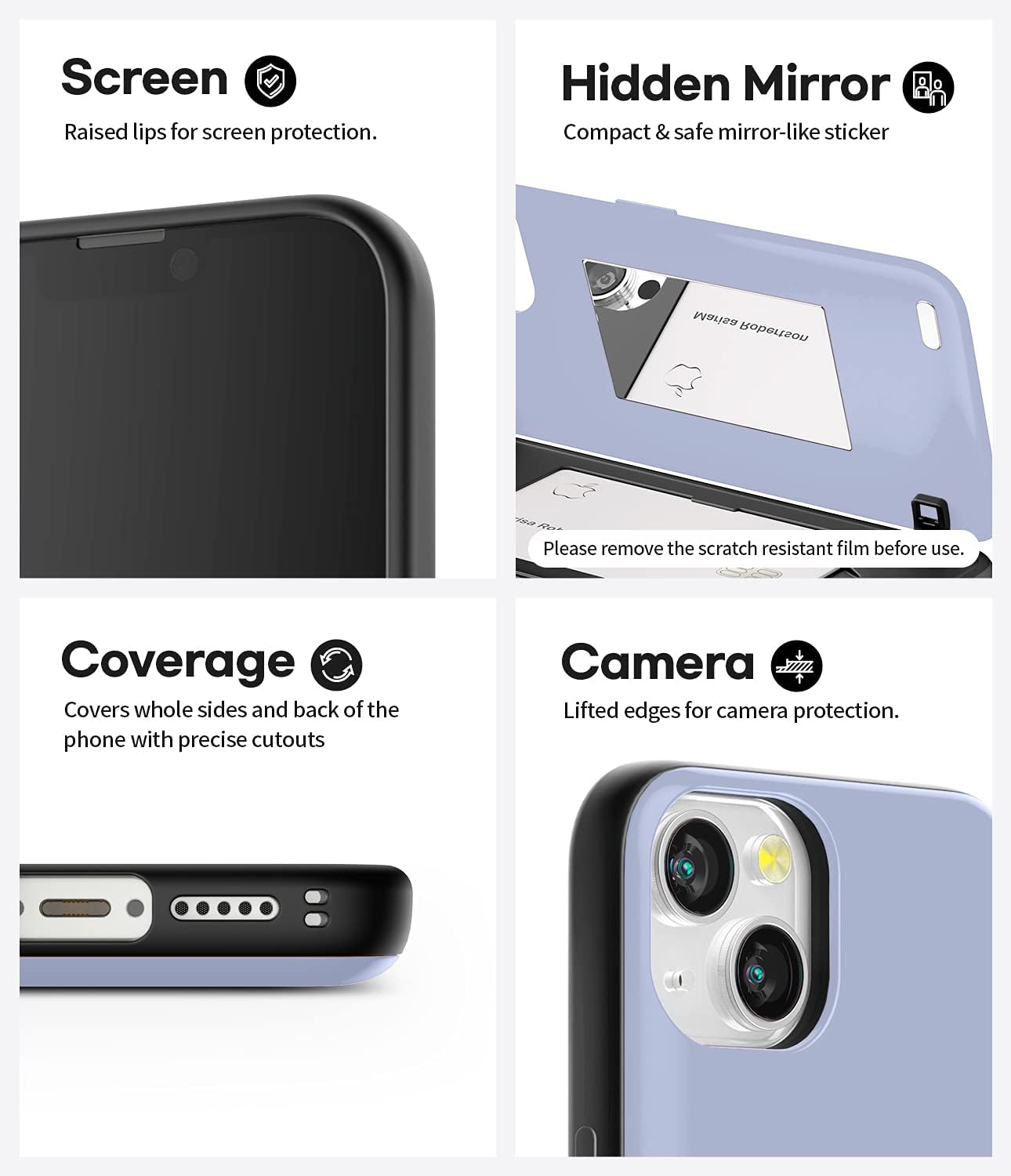 • [Kartenhalter] Widmen Sie sich allen Karten, die Leute tragen. Der Kartenaufbewahrungsteil ist mit einer Kurve gestaltet, sodass Sie 2 Karten von unten nach oben leichter aufbewahren können. Darüber hinaus ist der aufsteckbare versteckte Spiegel im