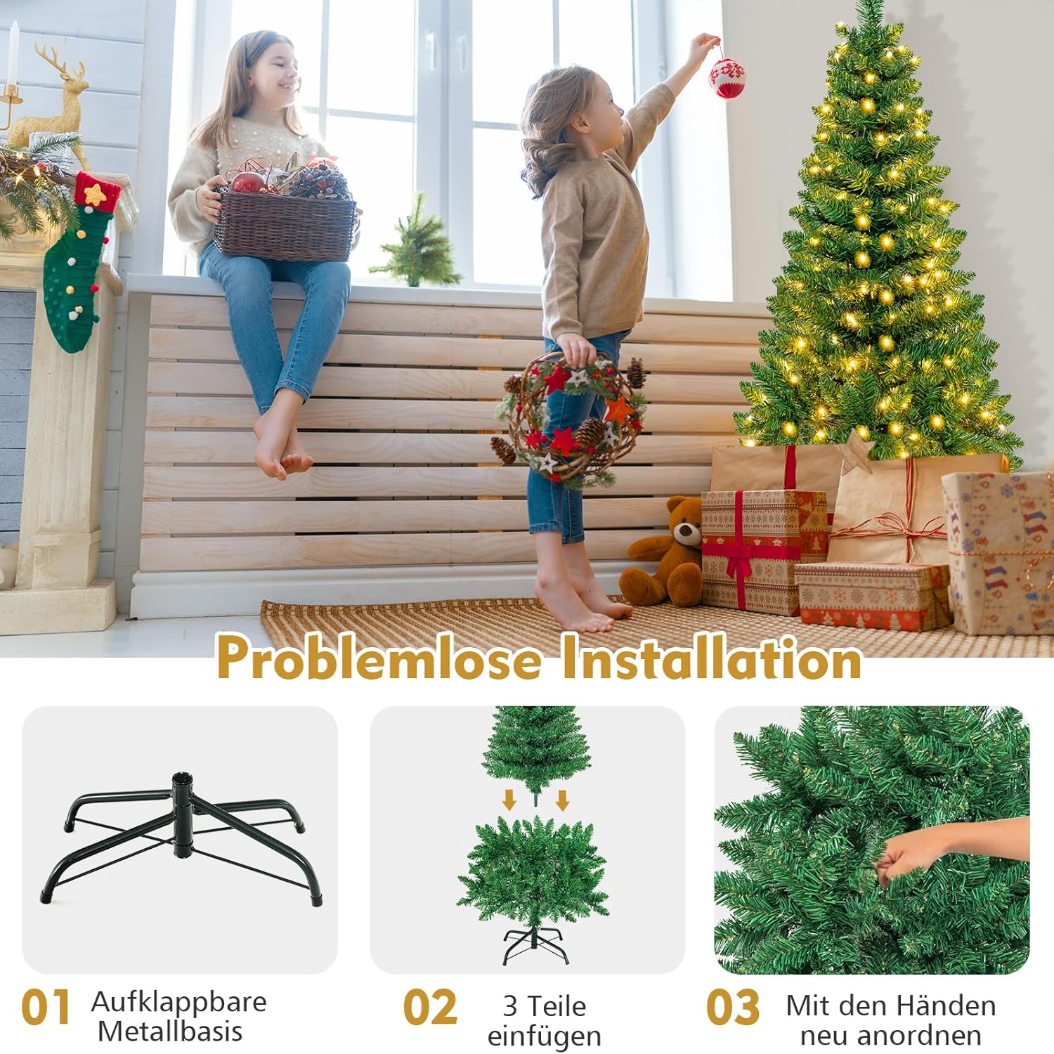 • 🌟Mit LED-Beleuchtung: Die Zweige dieses Weihnachtsbaums sind mit 150/250/350 warmweissen LEDs ausgestattet. Diese LEDs sind energieeffizient und langlebig, erzeugen eine friedliche und gemütliche Atmosphäre und sind sofort einsatzbereit, wenn Sie