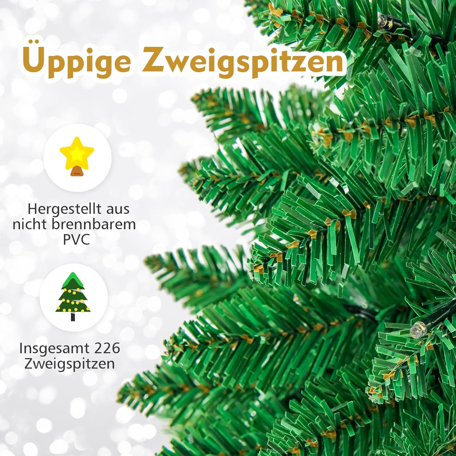 • 🌲Langlebiges Material: Dieser künstliche Tannenbaum besteht aus vielen realistischen Nadeln (226/708/1085 Zweige), mit einer üppigen und langlebigen Form. Hochwertige PVC- und Metall-Materialien sind für den langfristigen Gebrauch geeignet.