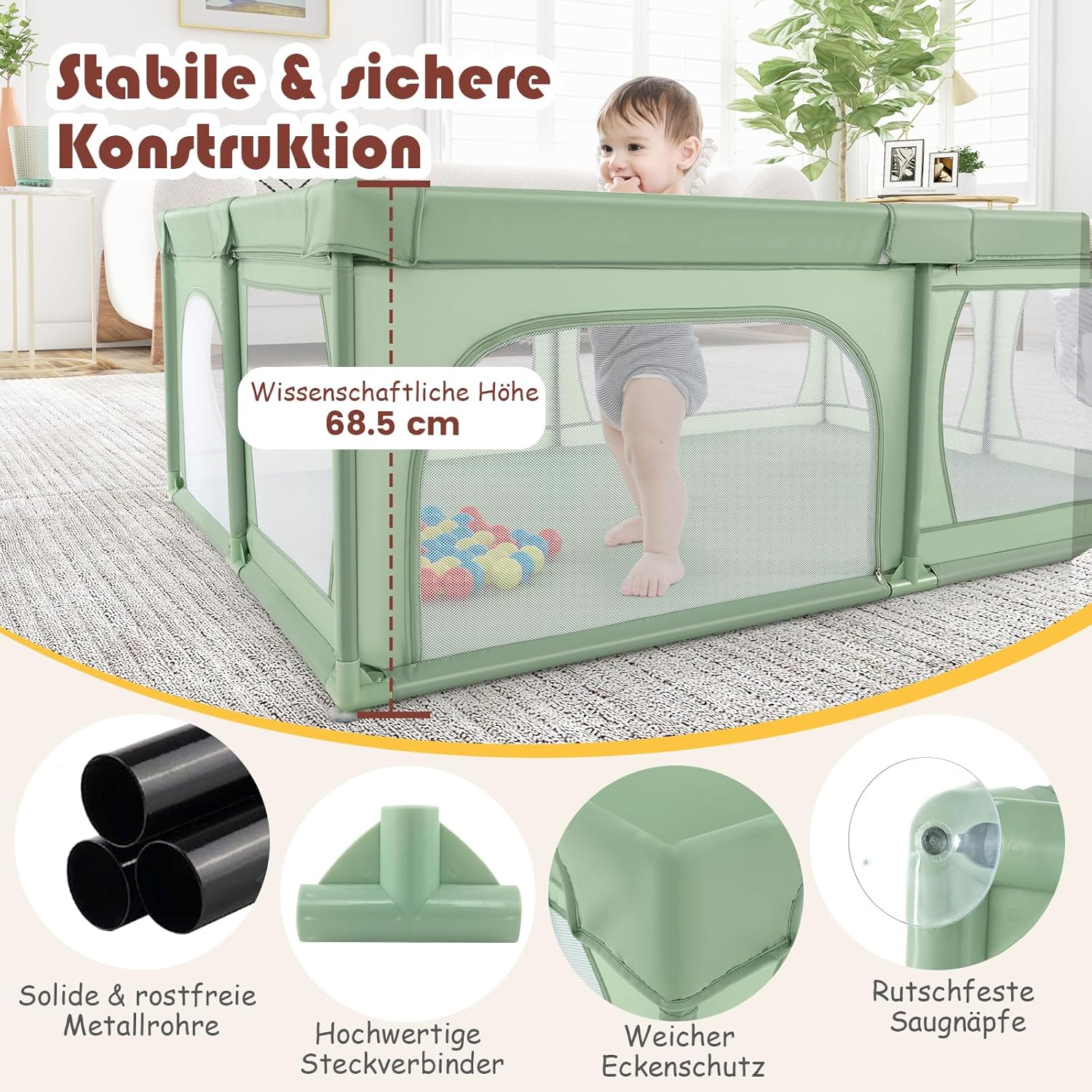 - Sichere Material: Sicherheit für Kleinkinder ist wichtigste! Dazu herstellen wir die Laufgitters mit sicheren Material mit Lebensmittelqualität, die ungiftig, geruchlos und sehr fest ist. Und das atmungsaktive Netz mit einer praktischen Höhe von 68cm