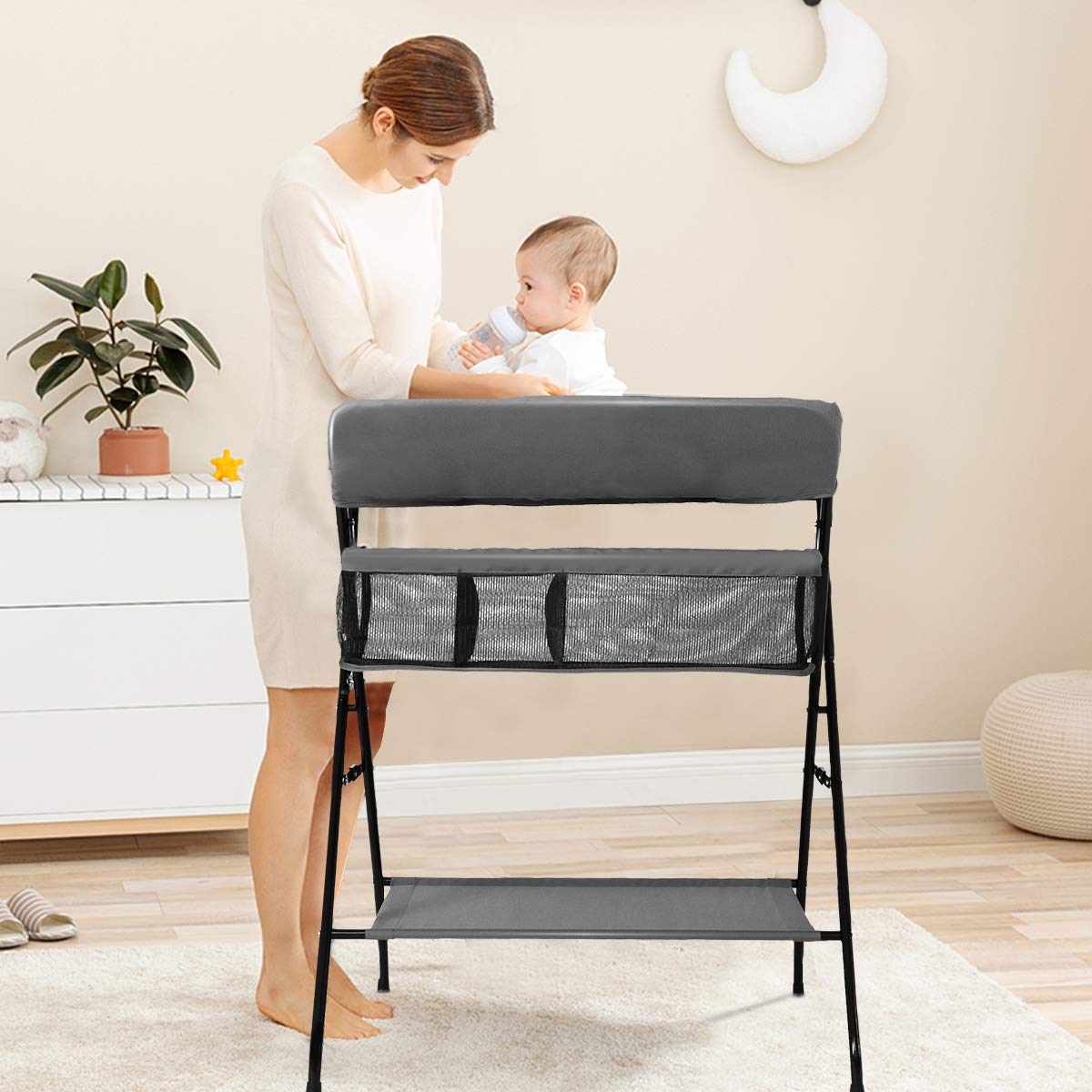 - 👶🏻Klappbar und platzsparend: Dieser Wickeltisch kann zusammengeklappt werden. Es kann mühelosgeöffnet und einfach bedient werden. Sie können es unter das Bett stecken oder hinter die Tür stellen, wenn Sie es nicht brauchen, und es nimmt dabei
