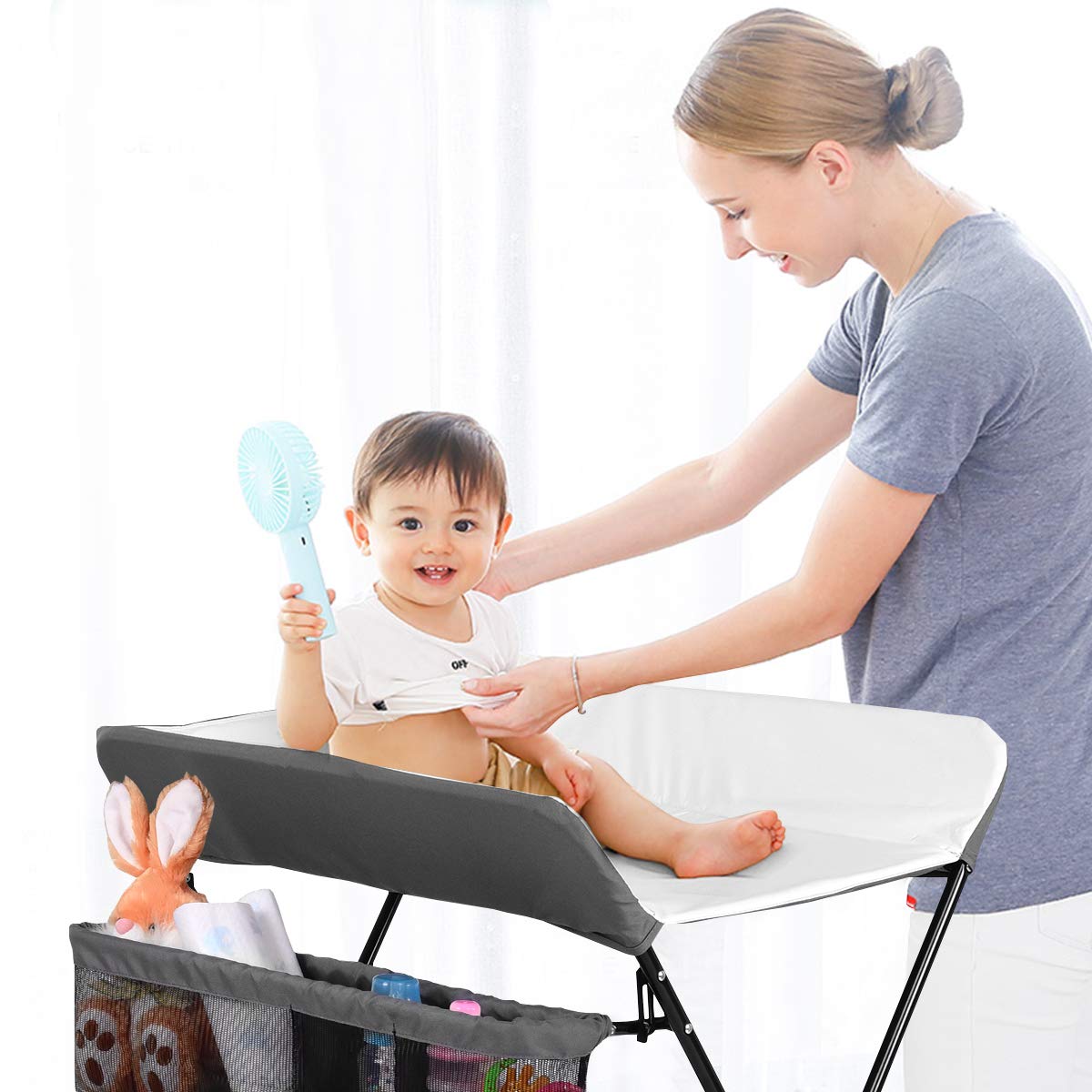 - 👶🏻Praktischer Speicherraum: An der Seite des Wickeltisches befindet sich eine Netztasche, in der kleine Gegenstände wie Papiertücher und Babyflaschen aufbewahrt werden können. Halten Sie das Nötigste immer griffbereit, verabschieden Sie sich