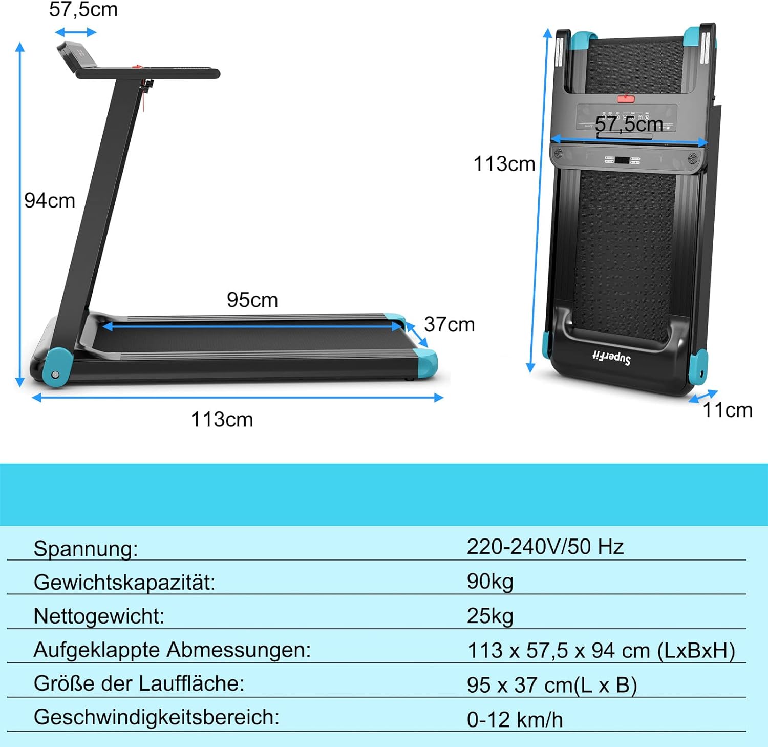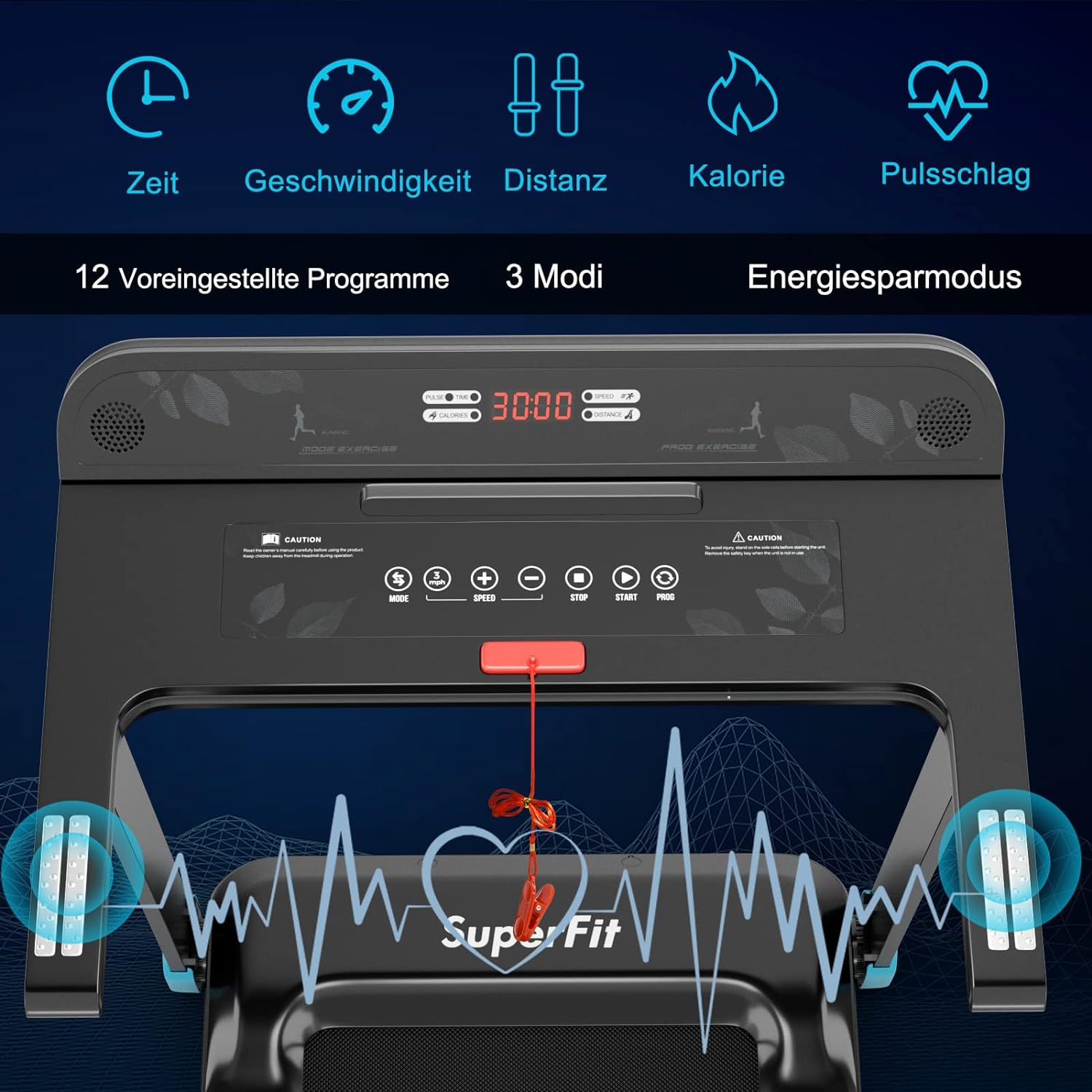 - Kraftvoller & leiser Motor: Mit einer verstellbaren Geschwindigkeit von 0-12 km/h, 12 voreingestellte Programme und 3 verschiedene Modi, sodass Sie Ihren individuellen Trainingszielen effektiv näherkommen. Da es sehr leise ist, kann das Laufband auch