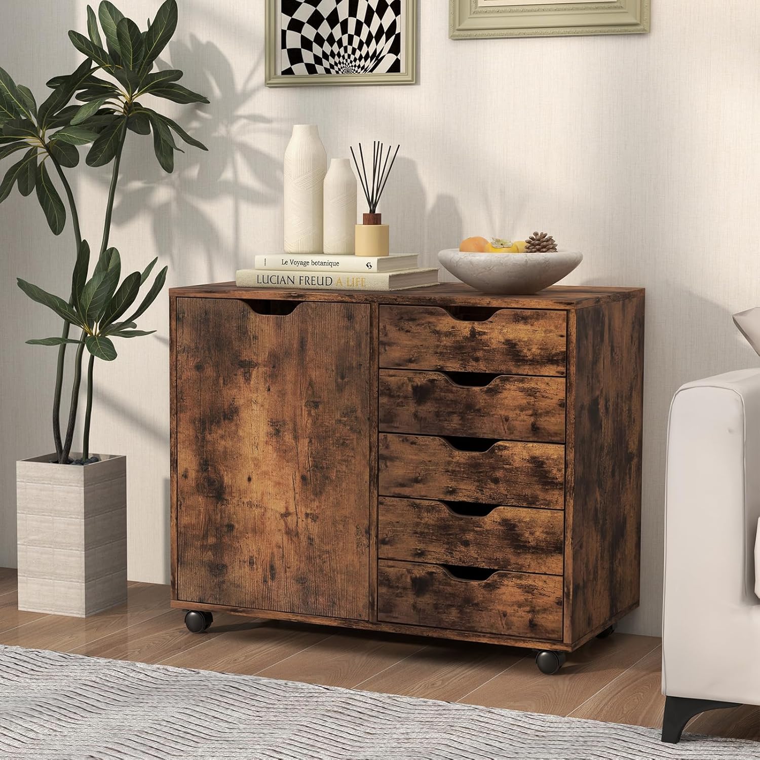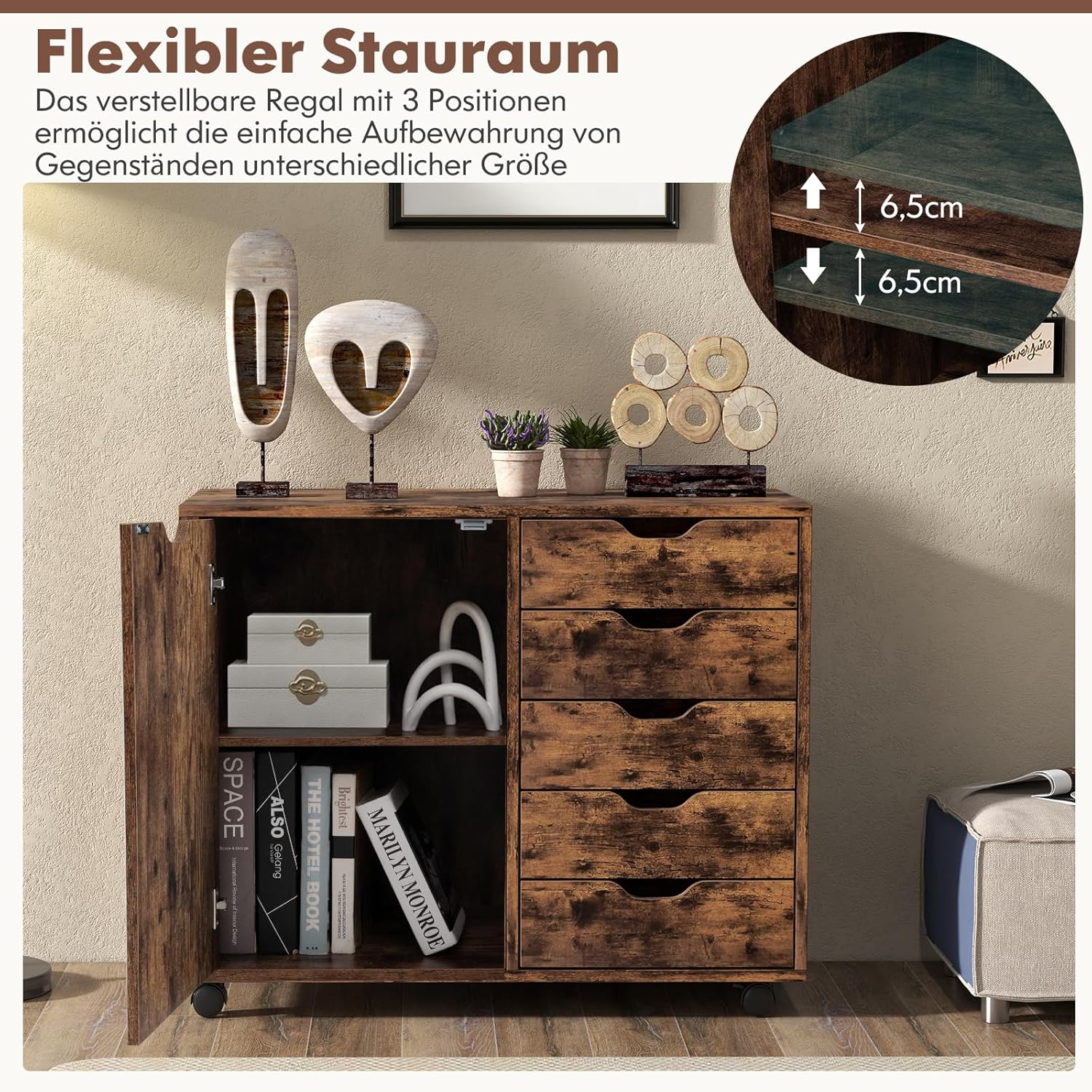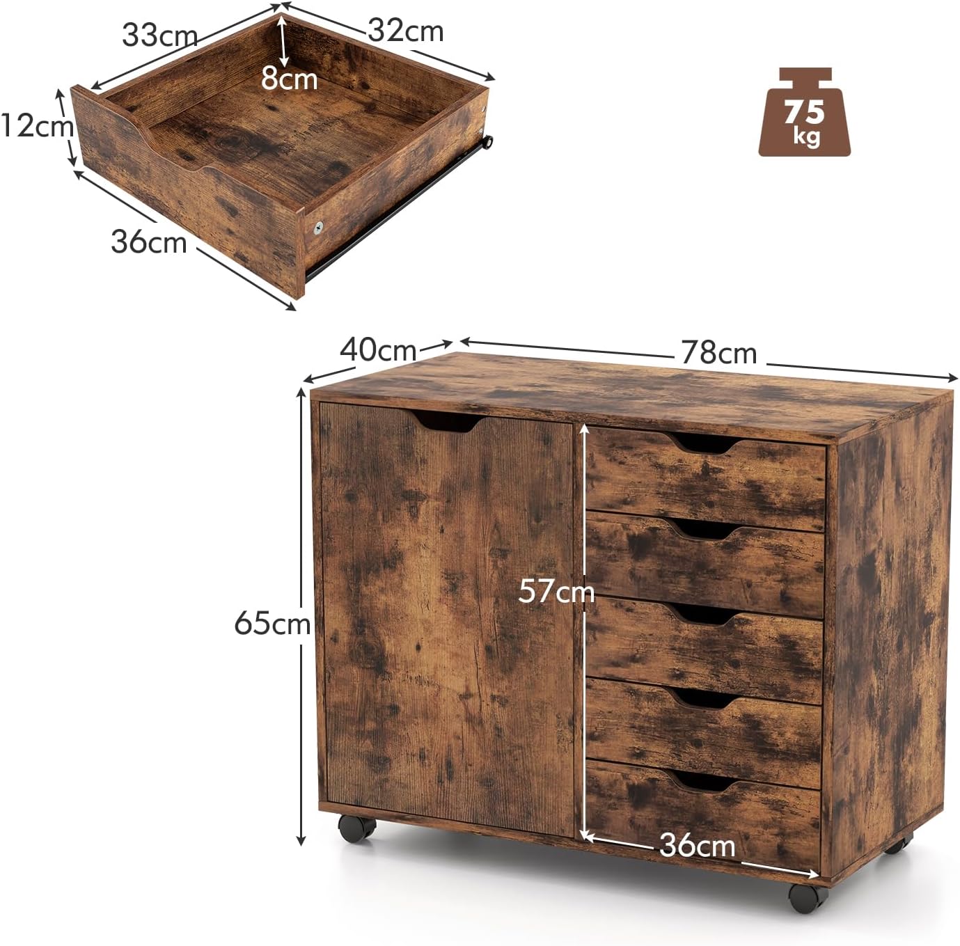 - Erstaunlich viel Platz: Dieser Rollcontainer verfügt über 5 Schubladen und einen grossen Schrank, in dem Sie Ihre Bücher, Akten usw. unterbringen können. Das obere Regal bietet ausreichend Platz für einen Drucker oder Topfpflanzen.