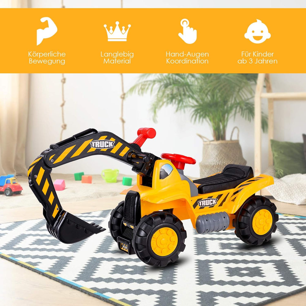 - Premium hergestellt für Kindersicherheit: Der Kinder-Sitzbaggerwurde aus robustem PP-Material aufgebaut.Mit einer stabilen Konstruktion hat er eine Gewichtskapazität von 25 kg.Die verbreiterten und rutschfesten Räder bieten eine Anti-Rutsch-Wirkung