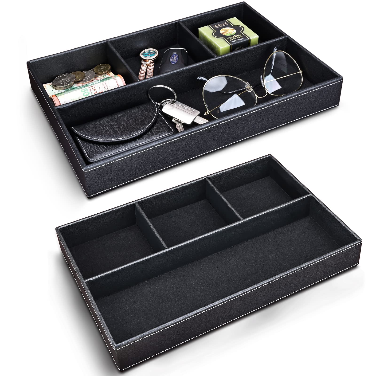 - 《Schlichtes und Elegantes Design》- Dieser kommode-Valet Tablett verfügt über 4 Fächer, leicht zu verstauende Accessoires und Gegenstände wie Telefon, Brieftasche, Schlüssel, Uhr, Schmuck, Münzen, Geld und mehr, um Ihren Morgen weniger hektisch