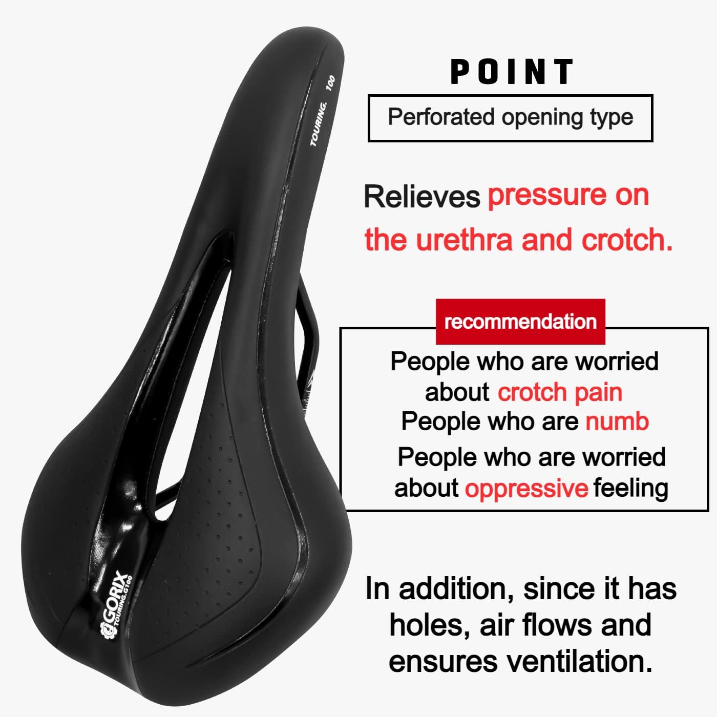- Loch in der Mitte: Loch in der Mitte entlastet die Unterdrückung der Harnröhre