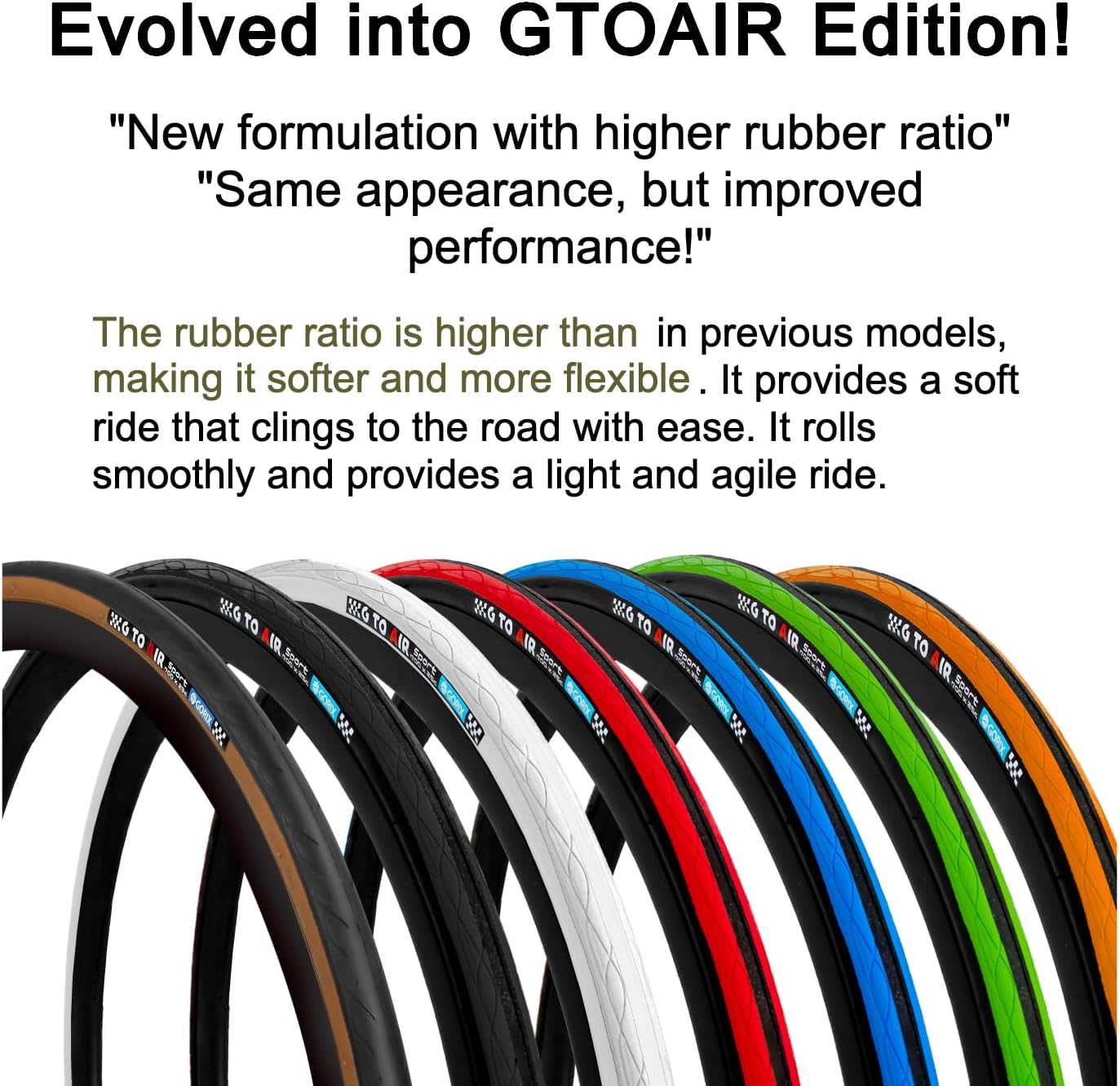 - Dieser Reifen wurde zu einem weicheren und flexibleren Reifen mit einem höheren Gummianteil als alle GTOAIR-Modelle verbessert. Dank der grossen Farbauswahl lässt er sich ideal individuell gestalten.
