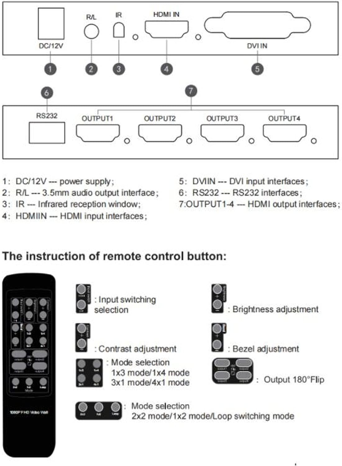 • [4 KANAL] Videowand-Controller kann 4 Bildschirmen gleichzeitig ein HD Multimedia Interface oder DVI-Gerät zuweisen, kompatibel mit Computern, Laptops, Set-Top-Boxen, DVD-Playern, für PS3, für Konsolen usw. Unterstützt 180-Grad-Bilddrehung und